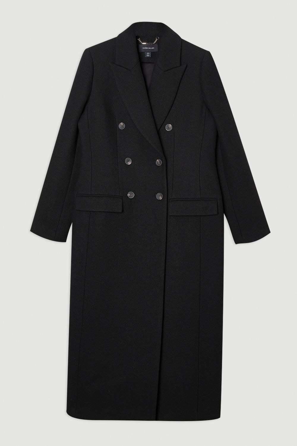 - Double-breasted design with structured silhouette for a sophisticated daywear statement - Wool-blend fabric offers warmth and durability for cooler seasons - Tailored midi length provides versatile styling options for various heights - Practical side pockets maintain the coat's clean lines while adding functionality - Classic notched lapel collar adds timeless refinement to this wardrobe essential This Petite Wool Double Breasted Tailored Midi Coat from Karen Millen embodies polished sophistication for everyday elegance. The structured silhouette creates a flattering shape that works beautifully over both casual and smart ensembles. Style with a turtleneck jumper and wide-leg trousers for a contemporary daytime look that transitions effortlessly from office to weekend brunch. The versatile midi length makes it ideal for pairing with ankle boots or trainers depending on the occasion. Perfect for family gatherings or casual meet-ups, this coat offers the right balance of refinement and practicality. The timeless design ensures it will remain a wardrobe cornerstone for years to come, while the tailored fit provides a put-together appearance without compromising on comfort. Layer over knitwear and jeans for an effortlessly chic weekend ensemble that radiates understated confidence. Product Details & Care Main: 50% Polyester. 47% Wool. 3% Other fibres. Lining: 55% Polyester. 45% Viscose/Rayon. Iron on reverse. Model wears UK 8 US 4. Length Approx: 119cm