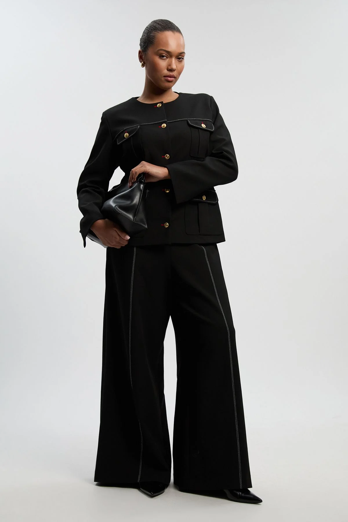 Plus Size Compact Stretch Tailored Flared High Waisted Trousers
