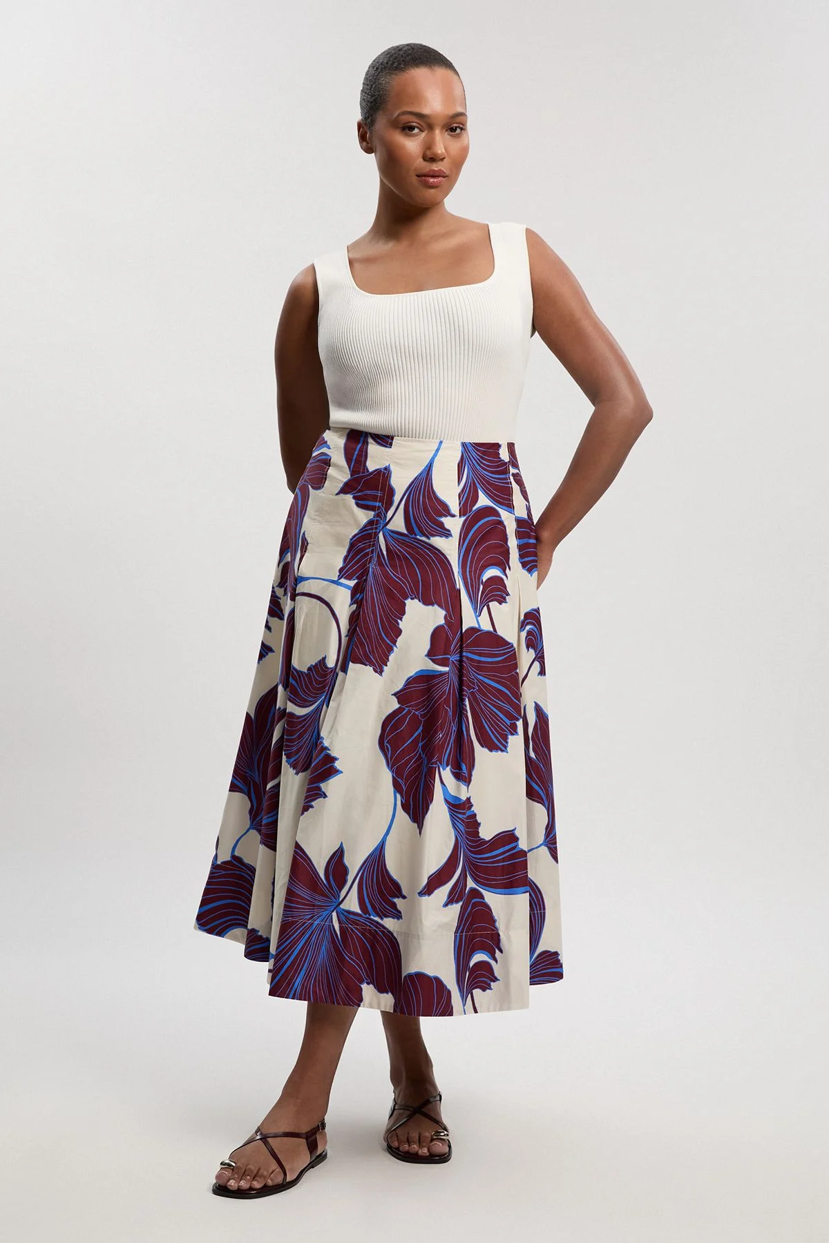 - Striking graphic floral print in a bold, artistic design - Cotton sateen woven fabric offering a subtle sheen and smooth texture - A-line silhouette with elegant midi length for a flattering fit - Practical side pockets for everyday functionality - High waistline that creates a defined silhouette This Karen Millen skirt showcases sophisticated artistry through its distinctive graphic floral pattern. The cotton sateen woven fabric provides structure whilst maintaining a graceful drape that moves beautifully with every step. Style with a fitted square-neck top as shown for daytime elegance, or transform for evening occasions with a crisp white shirt and pointed court shoes. The midi length offers versatility for various settings from garden parties to gallery openings. The high waist design creates a flattering shape that works wonderfully with both tucked-in blouses and cropped tops. This piece demonstrates expert craftsmanship with its precise tailoring and thoughtful proportions, making it a standout addition to your wardrobe that transitions effortlessly between seasons with simple styling adjustments. Product Details & Care Shell: 76% viscose, 24% polyamide, 100% polyester, wash with similar colours, Model wears UK 18/ US 16. Length Approx: 92cm