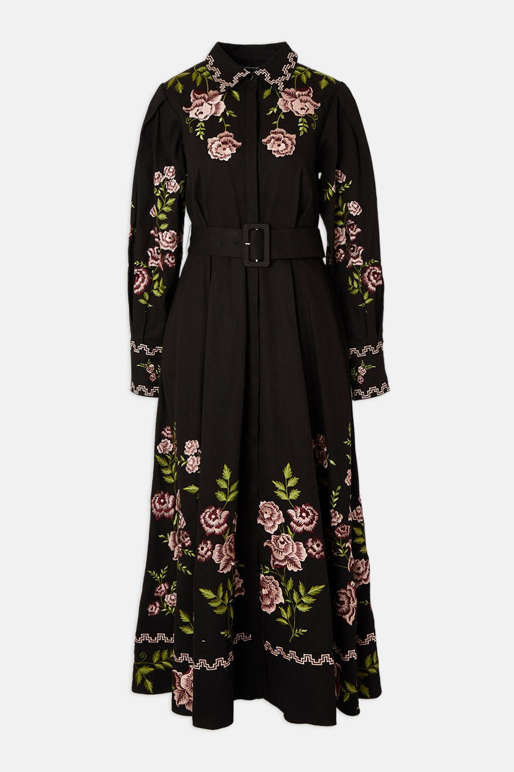 - Exquisite rose embroidery adorns the collar, sleeves and hem for a striking botanical statement - Cotton twill woven fabric offers comfortable structure and durability for all-day wear - Elegant eyelet detailing adds subtle texture and visual interest to this sophisticated piece - Classic collared neckline and full-length design create a refined silhouette - Belted waist defines your figure and allows for customisable fit This Karen Millen shirt dress combines timeless sophistication with contemporary charm. The intricate rose embroidery creates a beautiful contrast against the twill fabric, whilst the eyelet detailing adds subtle texture throughout. The collared neckline and belted waist offer a flattering structure that celebrates your curves. Style with flat leather loafers as shown for daytime polish, or pair with white trainers and a denim jacket for casual weekend brunches. The versatile midi length works beautifully for family gatherings or garden parties - simply add a woven tote and delicate jewellery to complete your look. This piece transitions effortlessly from spring to autumn when layered with a lightweight cardigan. The cotton construction ensures breathability and comfort, making this a wardrobe staple you'll reach for time and again. Product Details & Care 100% Cotton. Lining: 100% Cotton. Embroidery: 100% Viscose/Rayon. Wash on a 30 degrees cycle. Model wears UK 18/US 16. Length approx 140cm