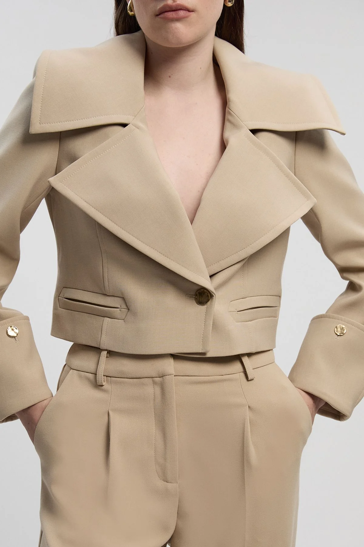 Polished Tailored Button Detail Jacket Product Details & Care Main: 83% Polyester, 12% Viscose/Rayon, 5% Elastane/Spandex; Lining: 100% Polyester Do not wash, do not bleach, do not tumble dry, cool iron, dry clean in mild solvent reduced cycle, dry clean separately, keep away from fire Model wears: Size 10. Models height approx: 5"9.
