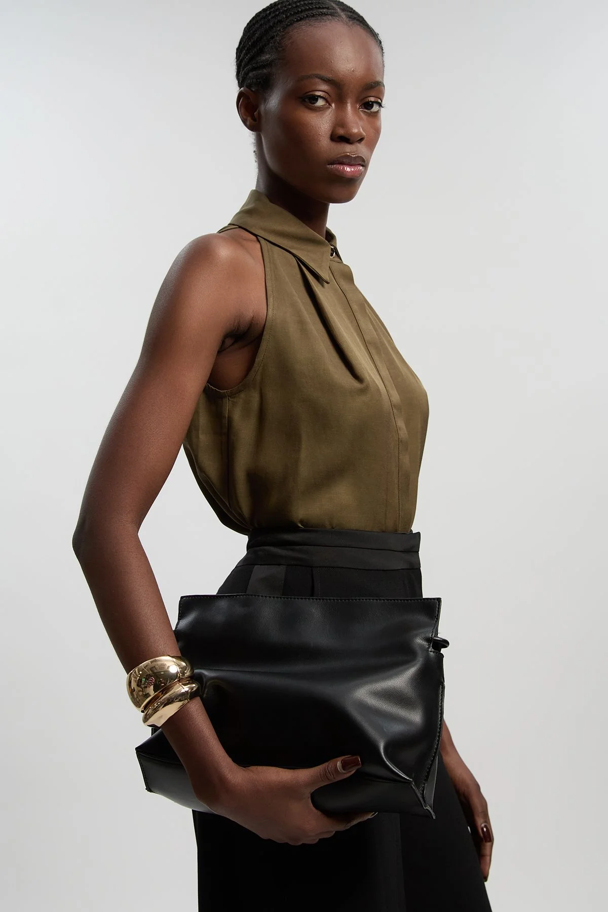 - Sophisticated halter design with elegant collar detail for a refined silhouette - Sleeveless cut perfect for layering or wearing alone during warmer seasons - Soft woven fabric blend with linen viscose texture offering comfort with a polished finish - Versatile regular fit that drapes beautifully for both professional and social settings - Subtle front pleating detail adds dimension and visual interest to this contemporary piece This collared halter shirt embodies refined simplicity with its clean lines and sophisticated design. The sleek silhouette creates an effortlessly chic look that transitions seamlessly from day to evening occasions. Style with tailored trousers and statement jewellery as seen on the model-the bold cuff bracelet adds a touch of modern elegance. For professional settings, layer under a structured blazer with court shoes for a commanding presence. When the weekend calls, pair with wide-leg trousers and a clutch for elegant brunches or gallery visits. The woven fabric offers a beautiful drape that flatters the form while maintaining comfort throughout your day. This Karen Millen piece exemplifies contemporary craftsmanship with its attention to detail and versatile styling potential-a true wardrobe essential for the discerning woman who appreciates refined design with a modern edge. Product Details & Care Main: 75% viscose 21% lyocell 4% linen. Machine wash only. Model wears UK 10/US 6. Model's height approx. 5'9". Length approx. 59cm