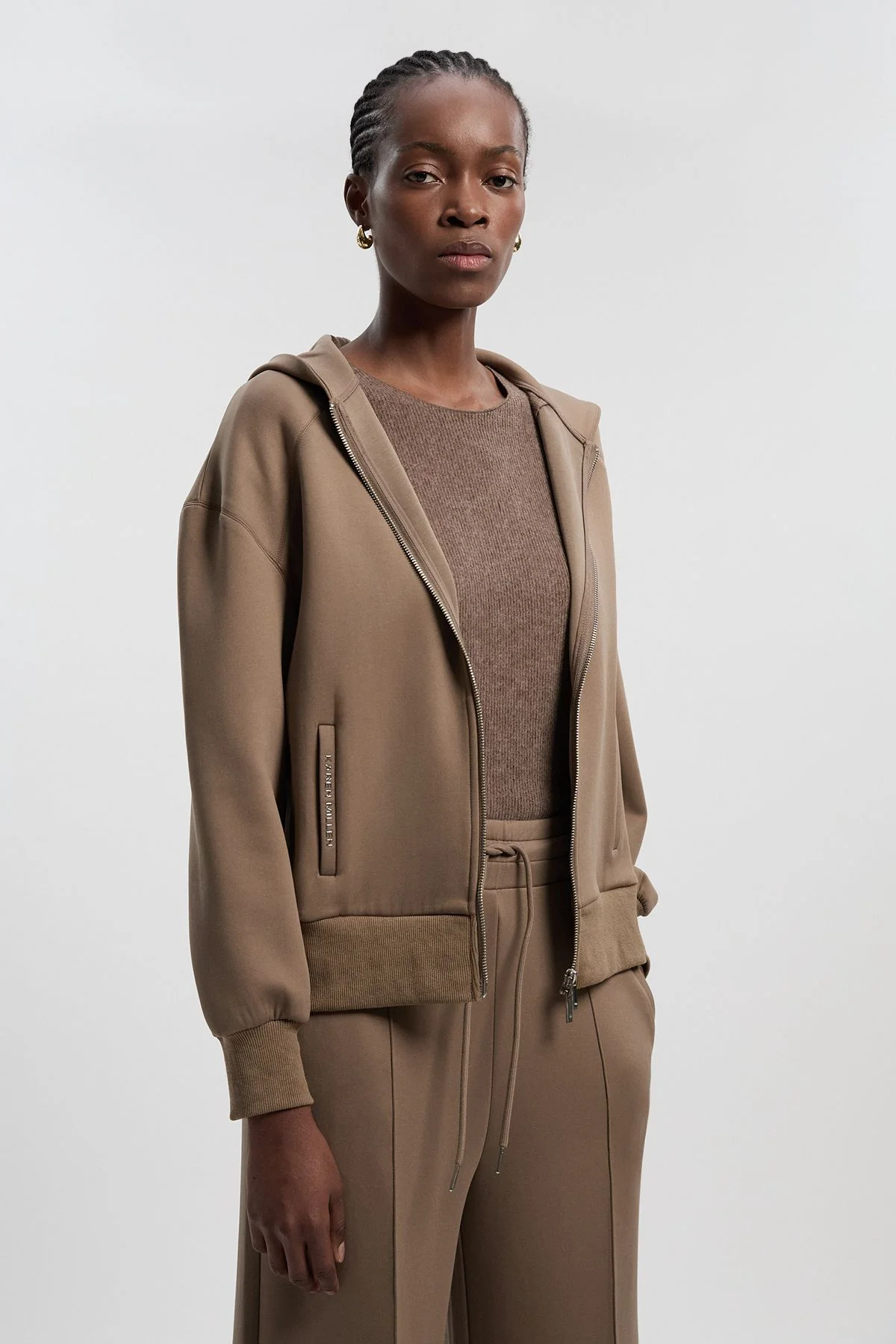 - Cosy jersey fabric with a luxurious soft-touch feel for ultimate comfort - Full zip-up front with sleek metal hardware for easy wear - Signature KM branding for an authentic Karen Millen finish - Practical side pockets perfect for everyday essentials - Ribbed hem and cuffs for a flattering silhouette and enhanced warmth Embrace effortless sophistication with this Luxe Lounge hooded jumper from Karen Millen. The loose fit creates a relaxed silhouette that doesn't compromise on style, whilst the cosy jersey fabric offers exceptional comfort for lounging at home or casual outings. Style with the matching wide-leg trousers as seen on the model for a coordinated loungewear ensemble that exudes contemporary elegance. For daywear, pair with slim-fit jeans and trainers for coffee dates, or layer over a simple t-shirt with leggings for weekend errands. This versatile piece transitions seamlessly from morning school runs to casual family gatherings, making it an essential addition to your everyday wardrobe. The hood adds both practicality and a sporty edge to this refined casual staple. Product Details & Care Main: 85% polyester, 15% elastane. Model wears UK S. Model height 5"9.
