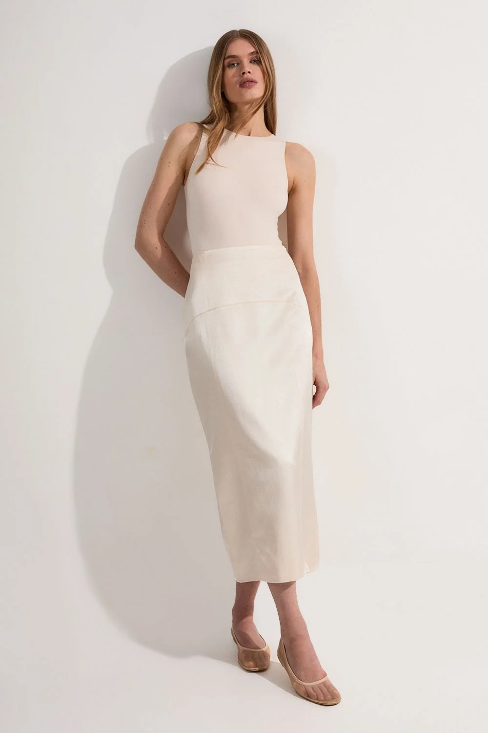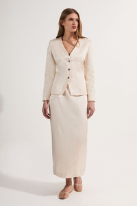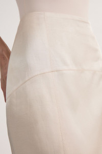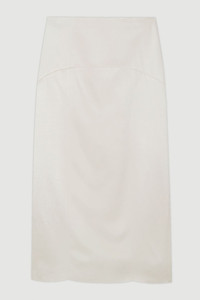 Embrace refined elegance with this tailored column midi skirt from Karen Millen. The streamlined silhouette creates a polished look suitable for a variety of formal occasions. Style it with a crisp white blouse and pointed-toe heels for a chic office ensemble, or pair it with a silk camisole and strappy sandals for summer weddings. The versatile midi length allows for effortless transition from day to evening events. For a coordinated outfit, team it with the matching blazer as seen on the model. The linen-blend fabric offers a luxurious feel while ensuring breathability, making it an ideal choice for warm-weather formal gatherings. Accessorise with minimalist jewellery to maintain the skirt's sleek aesthetic, allowing its impeccable tailoring to take centre stage. Tailored column silhouette for a sleek, sophisticated look Midi length hitting below the knee for versatile styling High-waisted design to accentuate the waistline Subtle back slit for ease of movement Crafted from a linen-blend fabric for breathable comfort Product Details & Care Main: 81% Viscose, 19% Linen Lining: 100% cotton, 30 degree cotton cycle. Do Not Tumble Dry, Cool Iron . Model wears UK Size 8/ US Size 4. Model height approx: 5"9. Length approx:86 cm
