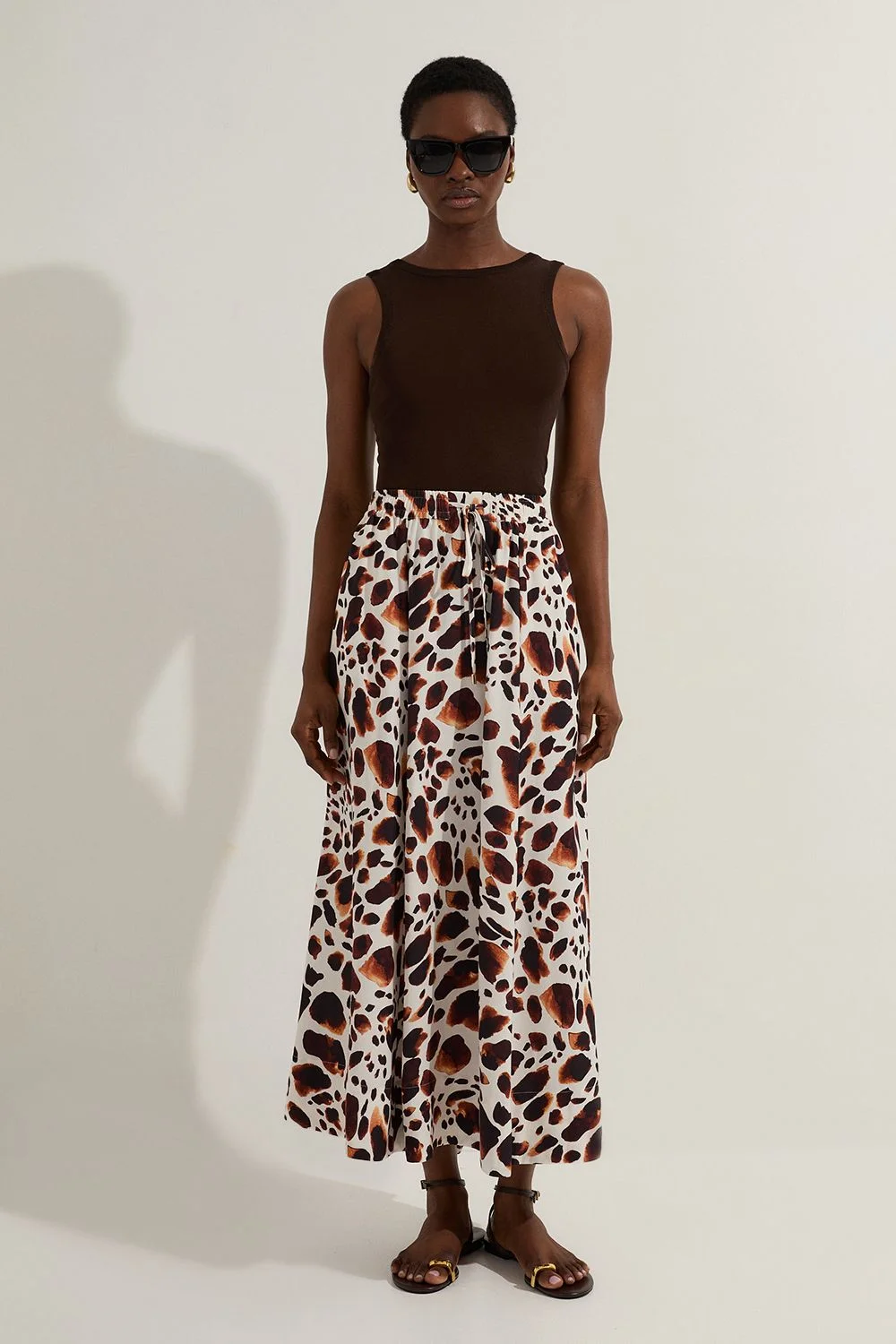 This Karen Millen woven skirt combines comfort with sophisticated style. The tie waist detail creates a customised fit that accentuates your natural shape, while the flowing fabric moves beautifully with every step. As seen on our model, pair with a simple fitted tank top and flat sandals for an effortless daytime look. The midi length works wonderfully for family gatherings or weekend brunches, offering the perfect balance between casual and put-together. For cooler days, layer with a denim jacket and ankle boots, or dress it up with a crisp white blouse and espadrilles for lunch with friends. The cotton fabric ensures breathability and comfort throughout the day, making this skirt an essential addition to your warm-weather wardrobe. Elegant tie waist design for a flattering silhouette Flowing woven fabric with a lightweight feel Midi length cut for versatile styling options Bold animal print pattern that makes a statement Practical side pockets for everyday functionality Product Details & Care 100% Cotton. Gentle machine wash at 30 with similar colours.