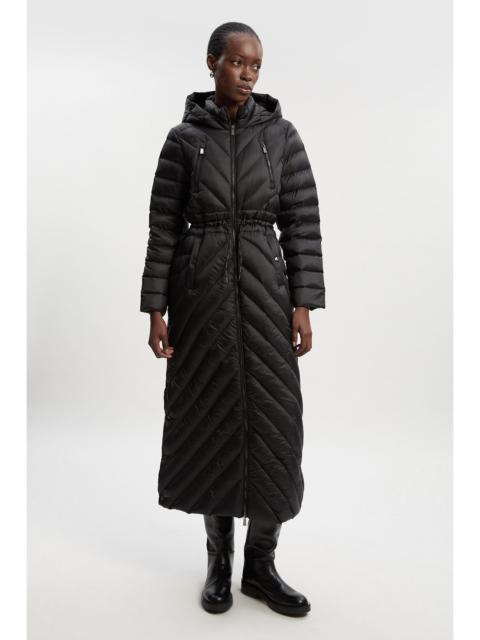 - Luxurious real down filling for exceptional warmth without bulk - Distinctive diagonal quilting pattern creates a flattering silhouette - Practical hood for additional protection against the elements - Knee-length design offering extended coverage and warmth - Convenient packable design, perfect for travel and storage This Karen Millen down coat combines sophisticated style with practical functionality. The elegant knee-length silhouette with distinctive diagonal quilting creates a refined daywear piece that doesn't compromise on warmth. Style with wide-leg denim and a crisp white top for an effortlessly chic weekend look, or layer over casual knitwear and trainers for school runs and countryside walks. The packable design makes it an ideal travel companion, easily stowed away when not needed. The practical hood and generous length ensure you remain protected during unpredictable British weather, whilst the regular fit allows for comfortable layering. This coat represents the perfect marriage of expert craftsmanship and contemporary design, making it a versatile addition to your autumn-winter wardrobe. Product Details & Care Main 52% Recycled Polyamide, 48% Polyamide, Filling:90% Down, 10% Feathers. Cool tumble dry separately to restore appearance. 30 degrees cotton cycle, tumble dry low heat, do not dry clean. Model height 5"9. Model wears UK8/US4. Item length: 113cm.