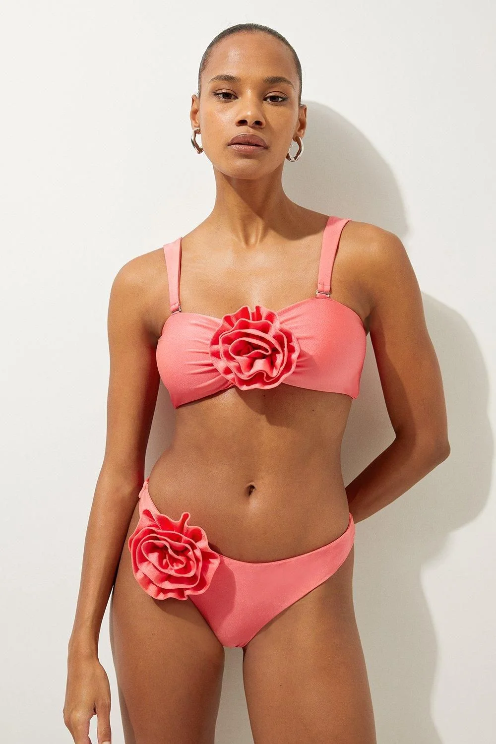 Welcome the sun with a bikini that will turn heads, the top of which features a three dimensional corsage accent at the cleavage, and a comfortable bandeau style, with optional, wide shoulder straps. Style this piece with the matching bikini bottoms, strappy sandals, and a beach cover up for a holiday look that can be reworn time and time again. Rosette Detail Bandeau Bikini Top Comfortable Bandeau Style Unique, Three Dimensional Flower Accent at Cleavage Optional, Wide Shoulder Straps Clasp Fastening in Back Matching Bikini Bottoms Sold Separately Product Details & Care 82% polyamide 18% elastane. Wash on 30 degree synthetic cycle. Model wears UK Small.