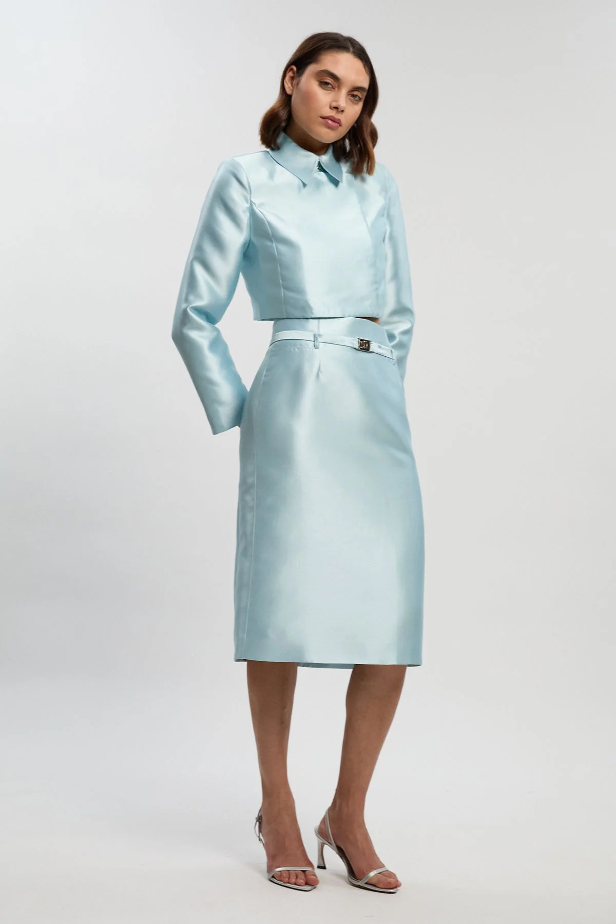 - Tailored midi skirt crafted from lustrous satin twill for a sophisticated finish - Elegant belted waist detail adds definition and a contemporary touch - Sleek A-line silhouette that flatters the figure while ensuring ease of movement - Midi length design hitting mid-calf for a refined daywear option - Fully lined for comfort and a smooth drape against the body This satin twill belted midi skirt embodies refined daywear with its impeccable tailoring and considered design. The structured yet fluid silhouette creates a graceful outline, while the belted waist detail adds definition and interest to your ensemble. Style with a crisp button-down shirt and slingback kitten heels as shown for an effortlessly put-together look perfect for important meetings or lunch appointments. For more casual gatherings, pair with a fine knit jumper and ballet flats. The versatile midi length works beautifully for family gatherings or weekend brunches, offering a polished appearance without appearing overdressed. The smooth lining ensures comfort throughout the day, while the tailored cut maintains its elegant shape as you move. This Karen Millen piece demonstrates the brand's commitment to expert craftsmanship and contemporary design. Product Details & Care Main 100% Polyester. Lining 100% Polyester. Wash dark colours separately. Iron on reverse. Model wears UK Size 8/ US Size 4. Approx 5"9. Item length 71cm