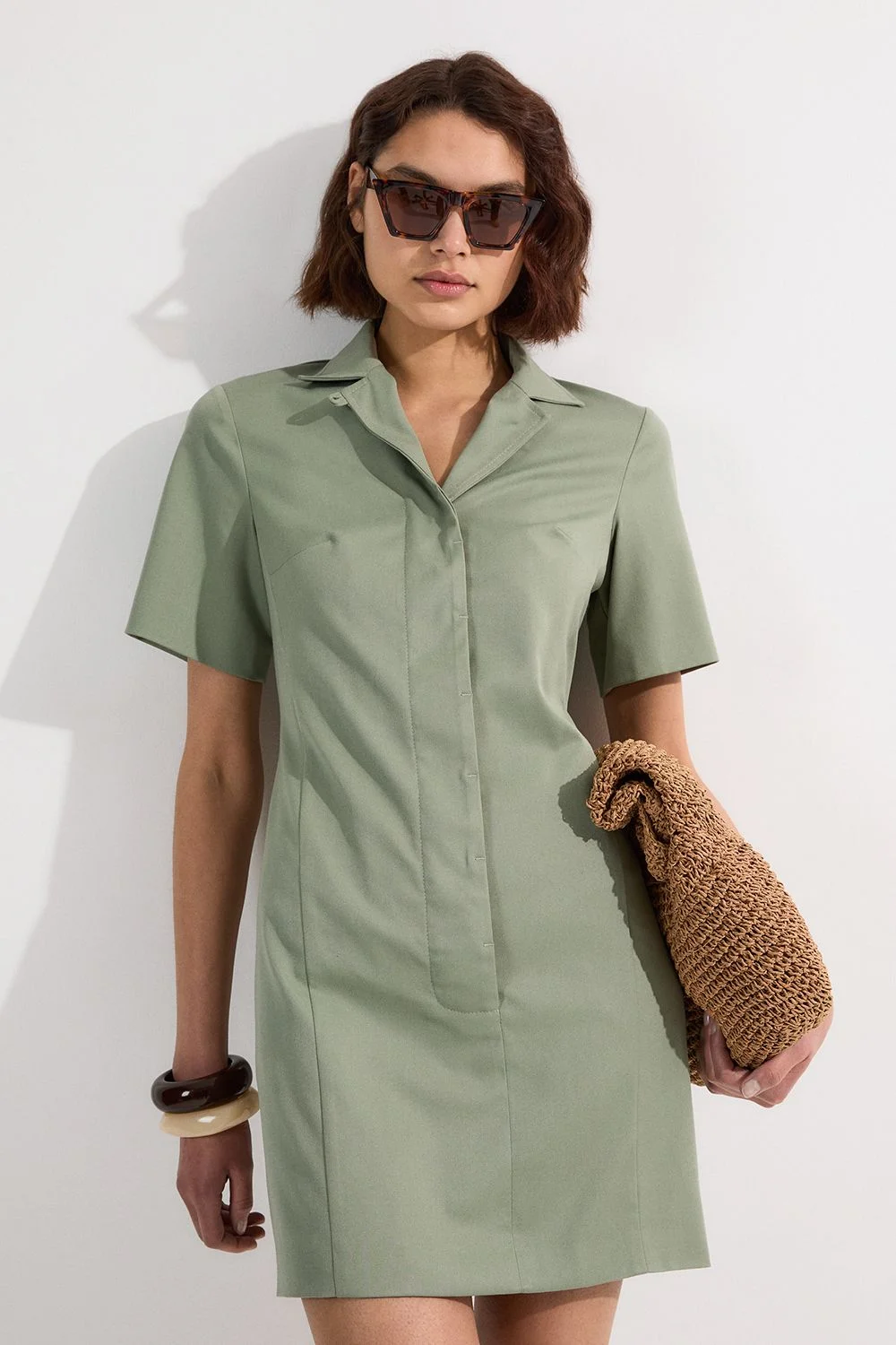 Soft Structured Tailored Shirt Mini Dress Product Details & Care Main: 64% Polyester. 34% Viscose/Rayon. 2% Elastane/Spandex. Lining: 100% Polyester. Dry clean only. Model wears UK Size 8/ US Size 4. Model height approx: 5"9. Length approx: 86cm
