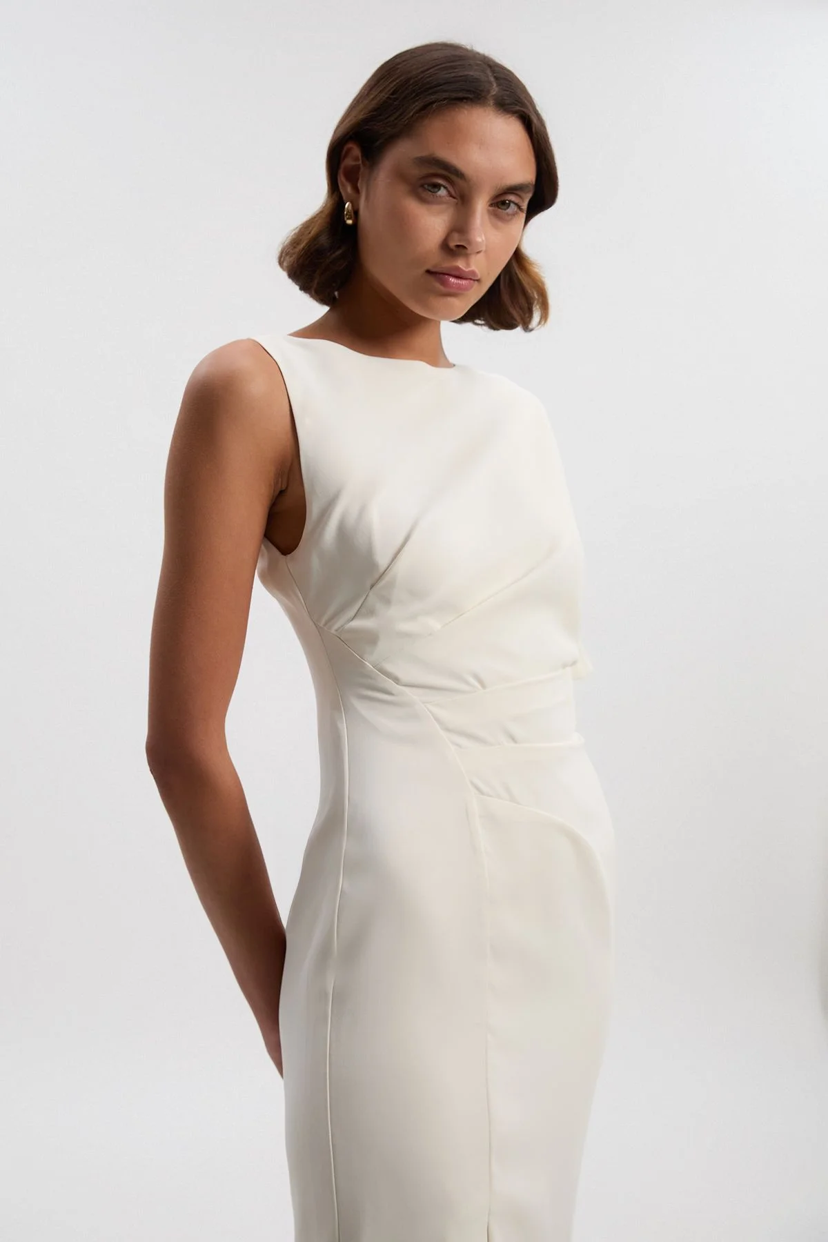 Soft Tailored Asymmetric Sleeve Midi Dress