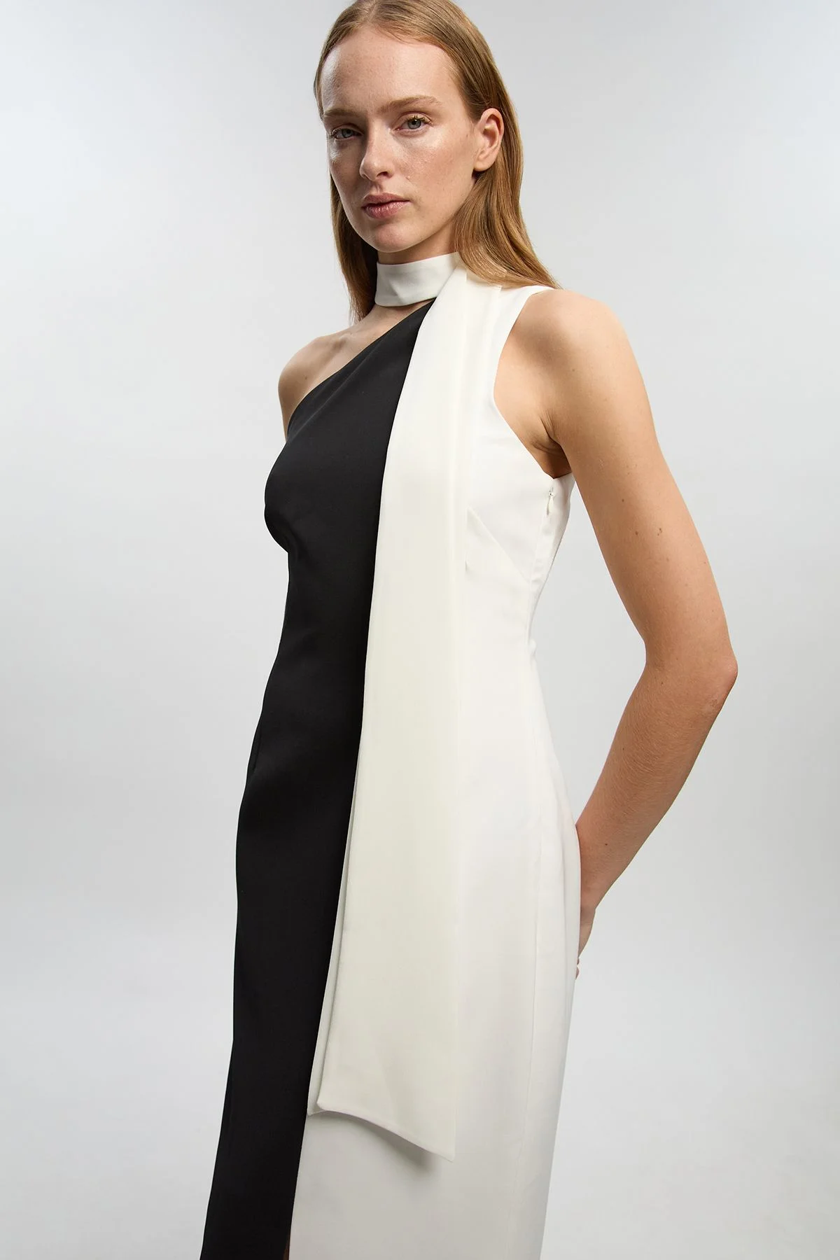 Soft Tailored Colour Block Bow Midi Dress