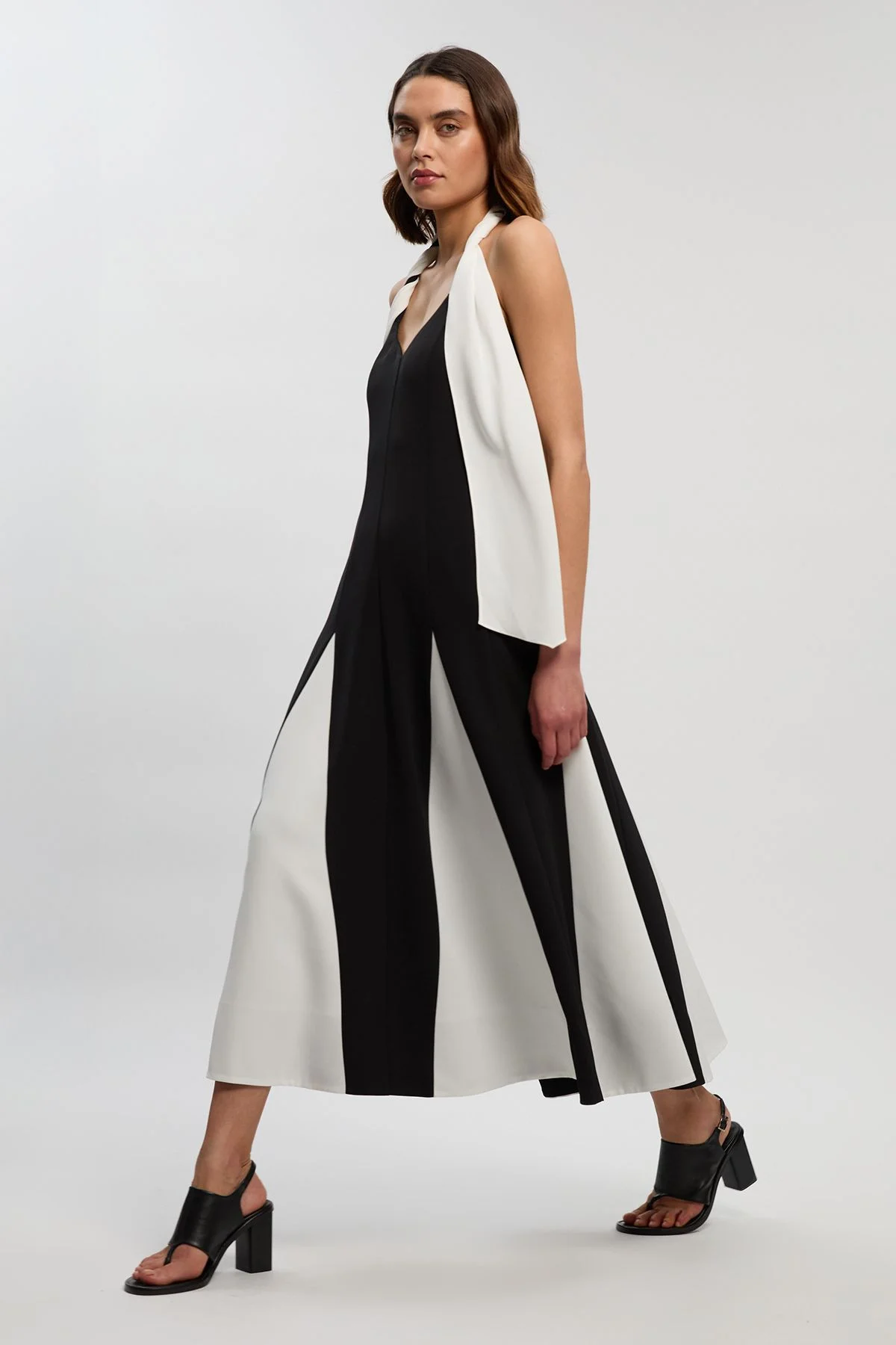 - Striking colour block design creates a bold, architectural silhouette - Elegant halterneck style with a sophisticated V-neckline - Soft tailored construction offers a refined drape that moves beautifully - Maxi length with a flowing A-line cut for graceful movement - Fully lined for comfort and a smooth, structured finish Make a statement at your next formal occasion with this contemporary halterneck maxi dress. The architectural colour block design creates visual interest while maintaining a refined aesthetic perfect for sophisticated events. Style with block heel sandals as shown for a modern take on occasion dressing, or pair with strappy metallic heels and statement earrings for evening affairs. The soft tailoring ensures comfort throughout extended wear, whilst the flowing maxi length creates an elegant silhouette that commands attention. This versatile piece transitions effortlessly from summer weddings to race day events, and even formal garden parties. Add a structured clutch and minimal jewellery to complete this polished ensemble that reflects the expert craftsmanship synonymous with Karen Millen. Product Details & Care Main: 100% polyester Lining: 100% polyester. Machine wash only. Model wears Size Petite UK 10/US 6. Model's height approx. 5'9". Length approx. 135cm