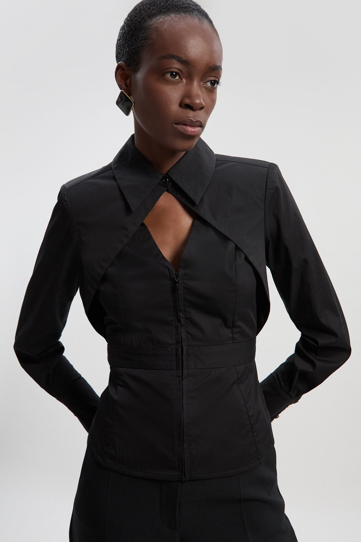 This Karen Millen shirt redefines daywear with its architectural cut-out detail that transforms a wardrobe staple into a statement piece. The boxy silhouette strikes the perfect balance between comfort and structure, making it ideal for the woman who appreciates contemporary design with a sophisticated edge. The stretch cotton blend ensures this piece moves with you throughout the day whilst maintaining its crisp appearance. Distinctive cut-out detail at the neckline Crafted from stretch cotton blend Structured collar Boxy fit Product Details & Care Main: 61% Cotton, 34% Polyamide, 5% Elastane, wash inside out, wash with similar colours, iron on reverse, do not bleach, do not tumble dry. Model wears UK 8/US 4. Model Height 5"9.