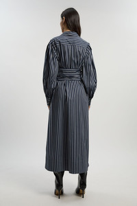 - Dramatic voluminous sleeves create a contemporary silhouette with striking proportions - Elegant wrap detail with tie fastening accentuates the waist for a flattering fit - Classic collared neckline adds a sophisticated touch to this statement piece - Cotton poplin fabric offers breathable comfort with a structured finish - Midi length design provides versatile styling options for various occasions Make a refined statement in this Karen Millen shirt dress, where classic stripes meet modern design elements. The wrap detail creates a beautifully cinched waist, while the drama sleeves add architectural interest to an otherwise timeless silhouette. Perfect for daytime engagements, style with sleek boots as shown for a contemporary edge, or pair with white trainers and a crossbody bag for weekend brunches. The collared neckline and structured cotton blend fabric maintain a polished aesthetic whilst ensuring all-day comfort. This versatile piece transitions effortlessly from family gatherings to casual office days when paired with a tailored blazer. The 130cm length offers modest coverage while showcasing the dress's distinctive design features. Add minimal jewellery to let the striking silhouette take centre stage. Product Details & Care 70% Cotton, 27% Nylon, 3% Elastane, wash with similar colours, wash inside out, iron on reverse, Model wears UK 8/US 4. Model Height 5"9. Length approx: 130cm