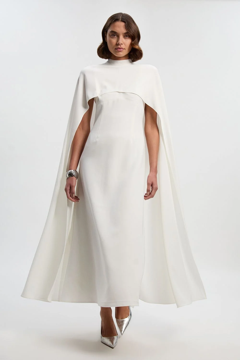 - Dramatic cape detail creates a sophisticated silhouette with elegant movement - High neckline offers refined coverage perfect for formal occasions - Maxi length design with a clean, tailored fit that flatters the figure - Fully lined construction ensures a smooth drape and comfortable wear - Subtle stretch fabric allows for ease of movement whilst maintaining structure Make a striking entrance at your next formal event in this architectural Tailored Cape Detail Maxi Dress from Karen Millen. The dramatic cape overlay creates a regal silhouette that commands attention, whilst the clean lines and high neckline showcase contemporary British tailoring at its finest. Style with metallic pointed court shoes as shown for a modern take on occasion dressing, and add statement jewellery to enhance the minimalist design. This versatile piece transitions beautifully from daytime ceremonies to evening receptions, making it ideal for weddings, race days and graduations. The tailored fit sculpts and defines your shape, whilst the flowing cape detail adds movement and drama as you walk. This is sophisticated occasion wear with an unforgettable contemporary twist-a signature Karen Millen piece that demonstrates expert craftsmanship and attention to detail. Product Details & Care Main: 90% Polyester, 10% Elastane/Spandex; Lining: 90% Polyester, 10% Elastane/Spandex Machine wash at 30°C synthetic cycle, do not bleach, do not tumble dry, cool iron on reverse, do not dry clean, wash with similar colours, reshape whilst damp Model wears: UK10/US6. Models height approx: 5"9. Length approx: 138cm.