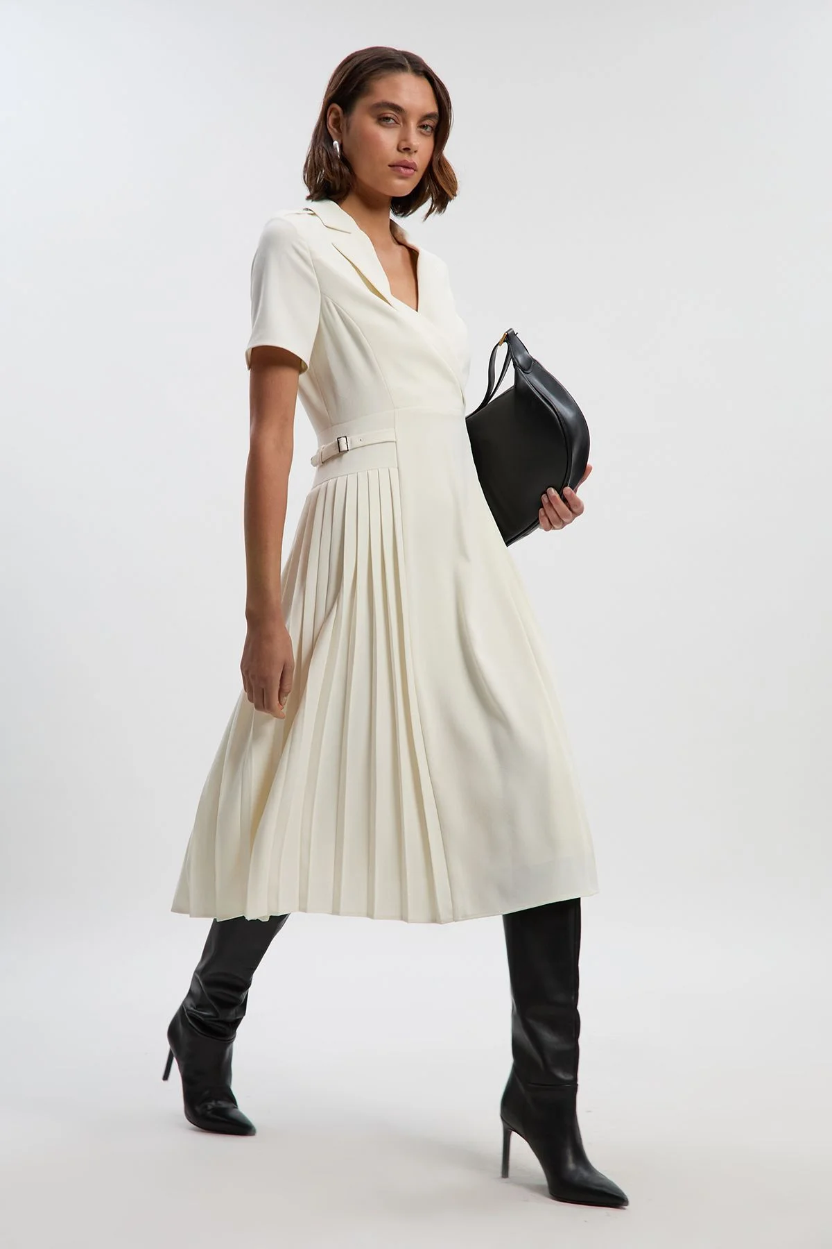 Tailored Crepe Pleated Midi Shirt Dress Product Details & Care Main: 100% Polyester, Lining: 100% Polyester Do not wash, do not bleach, do not tumble dry, cool iron, dry clean in mild solvent with reduced cycle, dry clean separately Model wears: UK10/US6. Models height approx: 5"9. Length approx: 117cm.
