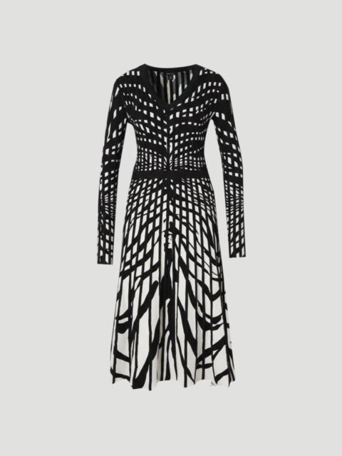 - Striking contrast between ribbed knit bodice and PU pleated skirt creates a contemporary silhouette - Collared neckline with quarter-zip detail adds sporty sophistication - Precision pleating on the mini skirt creates elegant movement and texture - Decorative D-ring belt detail defines the waist for a flattering shape - Long sleeves offer versatility for transitional weather styling This Karen Millen dress masterfully combines textures for a look that's both refined and fashion-forward. The ribbed knit top with its collared neckline and quarter-zip detail brings a sporty edge, while the pleated PU skirt introduces a touch of urban glamour. Perfect for daytime engagements, style with chunky ankle boots and a crossbody bag for weekend brunches, or pair with sleek trainers and an oversized tote for shopping trips with friends. The tall fit ensures an elegant proportion that works beautifully with flat footwear. For cooler days, layer with a tailored blazer or casual denim jacket to maintain the dress's contemporary appeal. This versatile piece transitions effortlessly from casual coffee dates to family gatherings, offering polished style with practical comfort. Product Details & Care Body: 74% Viscose, 26% Polyamide, Skirt: 100% Polyurethane, turn inside out before cleaning, hand wash separately in cool water using non-biological liquid detergent, Reshape whilst damp, Dry flat. Model wears UK Small.