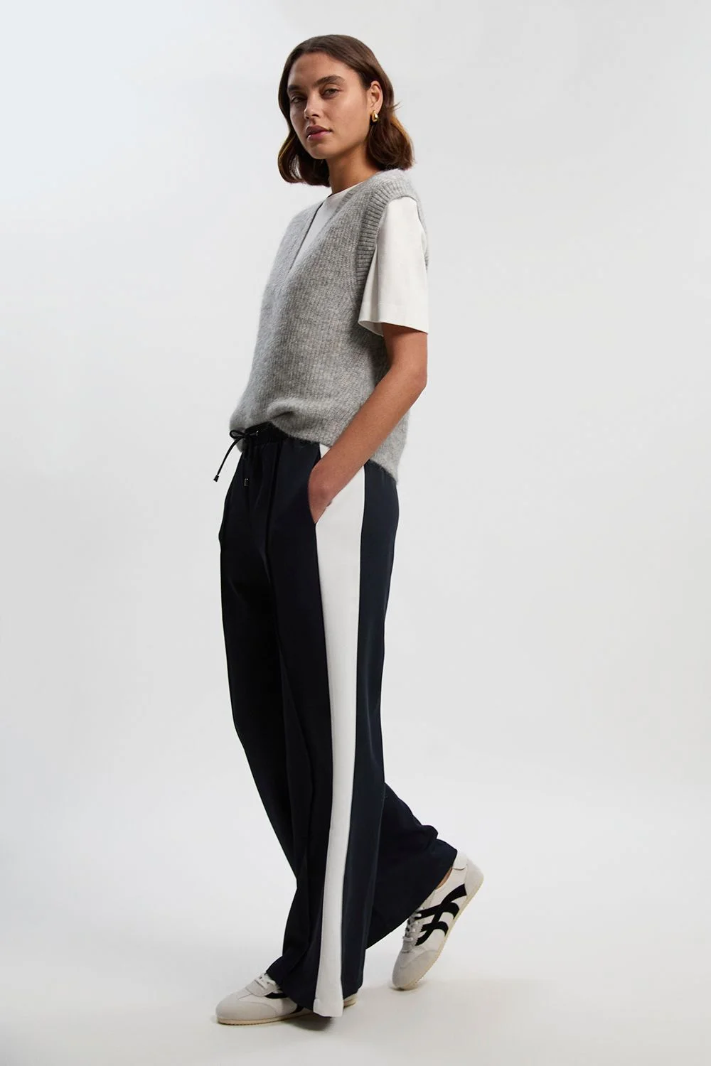 Twill Contrast Woven Wide Leg Trousers