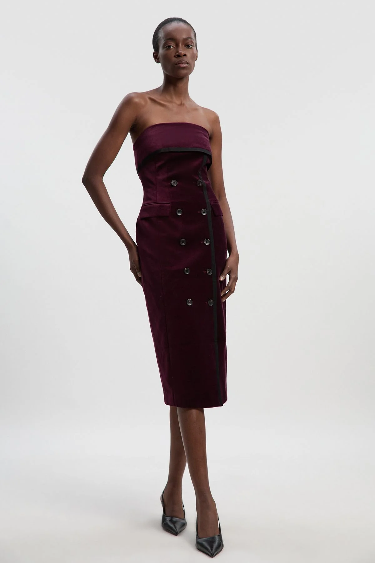 Velvet Groisgrain Bandeau Midi Tailored Dress