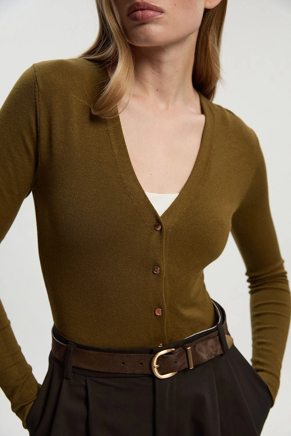 This Karen Millen cardigan combines timeless design with contemporary versatility. The sleek button detailing creates a refined focal point, whilst the viscose blend fabric ensures a comfortable fit that maintains its shape throughout the day. This wardrobe essential works for office settings or weekend plans, offering that perfect balance of comfort and style for your everyday rotation. V-neckline cardigan with button detailing Fitted silhouette Long sleeves Product Details & Care 70% Viscose/Rayon, 30% Nylon Machine wash at 30°C on wool cycle, do not bleach, do not tumble dry, cool iron, do not dry clean, remove promptly from washing machine, reshape whilst damp, dry flat, keep away from fire. Models wears UK size Small. Models height approx: 5"9.