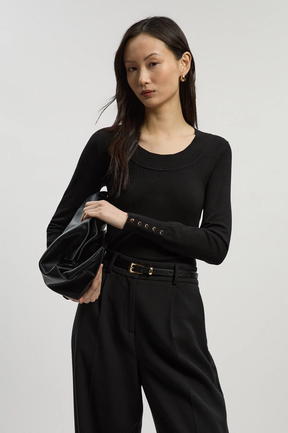 - Elegant scoop neckline creates a flattering frame for delicate jewellery - Sleek long sleeves with decorative button detailing at the cuffs - Soft viscose blend knit offers comfortable stretch and shape retention - Versatile slim fit design perfect for layering or wearing alone - Ribbed neckline adds subtle textural interest and structural integrity This sophisticated scoop neck knitted top exemplifies Karen Millen's commitment to refined craftsmanship. The streamlined silhouette creates a polished foundation for countless outfits, whilst the thoughtful button detailing at the cuffs adds distinctive character. Style with wide-leg trousers and a leather belt as shown for an effortlessly chic daytime ensemble, or pair with tailored cigarette trousers and ballet flats for coffee dates. The versatile design transitions seamlessly from office to weekend, making it ideal for family gatherings or casual brunches with friends. Layer under a structured blazer with jeans for a smart-casual look, or tuck into a pleated midi skirt for more dressed-up occasions. This essential knit piece offers the perfect balance of comfort and sophistication for the discerning woman's wardrobe. Product Details & Care Main: 70% Viscose/Rayon, 30% Nylon. Remove promptly from washing machine. Reshape whilst damp. Dry flat. Model wears UK size Small. Models height approx: 5"9.