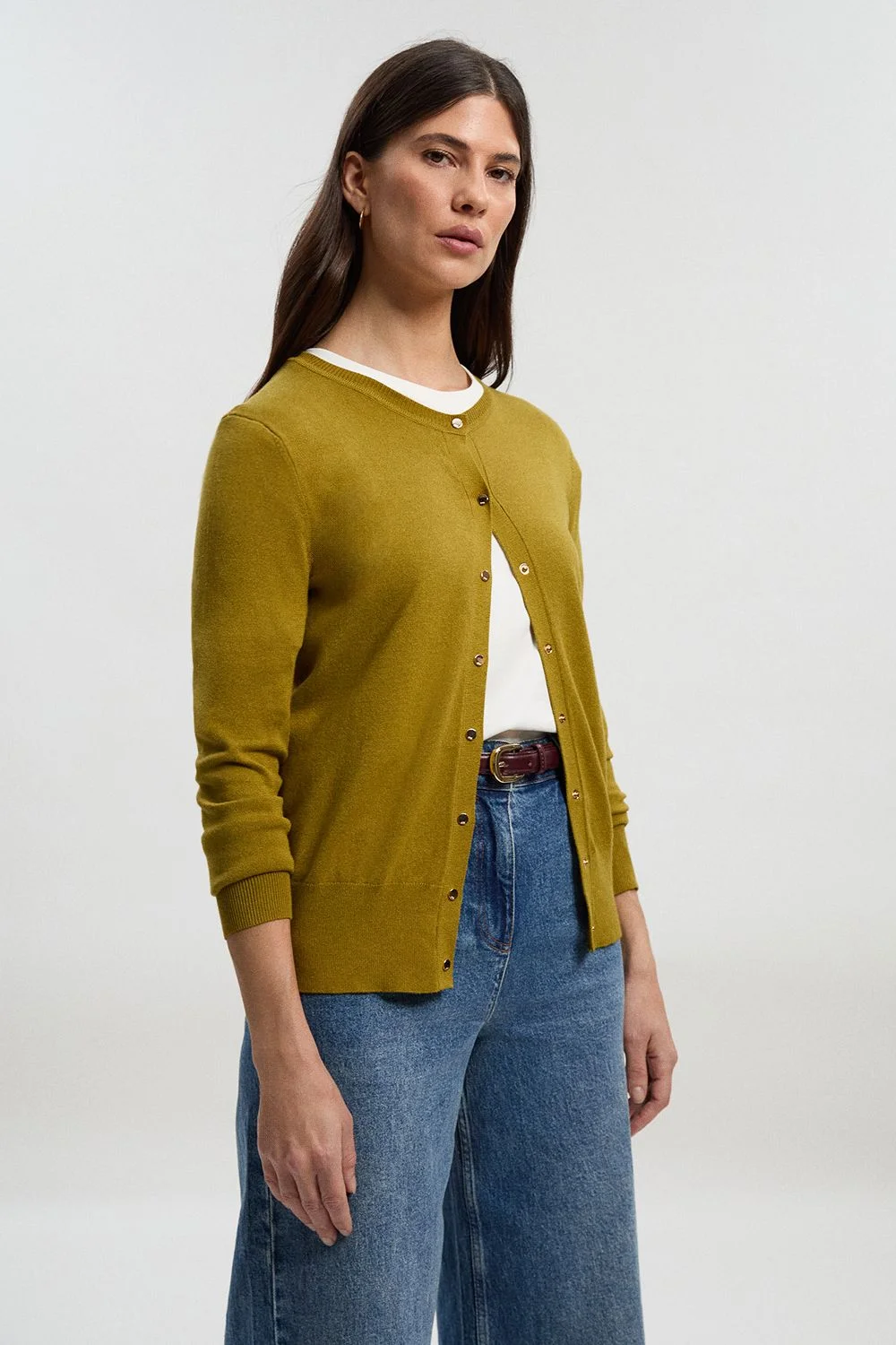 - Elegant round neck cardigan with stylish popper fastening for versatile wear - Three-quarter length sleeves offering perfect transitional season coverage - Soft viscose blend knit providing comfortable drape and shape retention - Streamlined silhouette designed to flatter the figure without bulk - Subtle ribbed trim detailing adding refined textural interest This Karen Millen knitted cardigan embodies sophisticated simplicity with its clean lines and considered design. The popper fastening allows for multiple styling options - wear fully closed for a polished look or open as a lightweight layer. Perfect for daywear, it pairs beautifully with tailored trousers and a simple top as shown, creating an effortlessly chic ensemble for family gatherings or weekend brunches. The versatile piece transitions seamlessly from office to casual settings - layer over a printed blouse with straight-leg jeans and ballet flats for shopping trips, or style with wide-leg culottes and trainers for a contemporary weekend look. The viscose blend ensures a luxurious feel with excellent drape, making this cardigan a foundational piece for your capsule wardrobe that maintains its sophisticated appeal through multiple seasons. Product Details & Care Main: 70% Viscose/Rayon, 30% Nylon. Remove promptly from washing machine. Reshape whilst damp. Dry flat. Model wears UK size Small. Models height approx: 5"9.