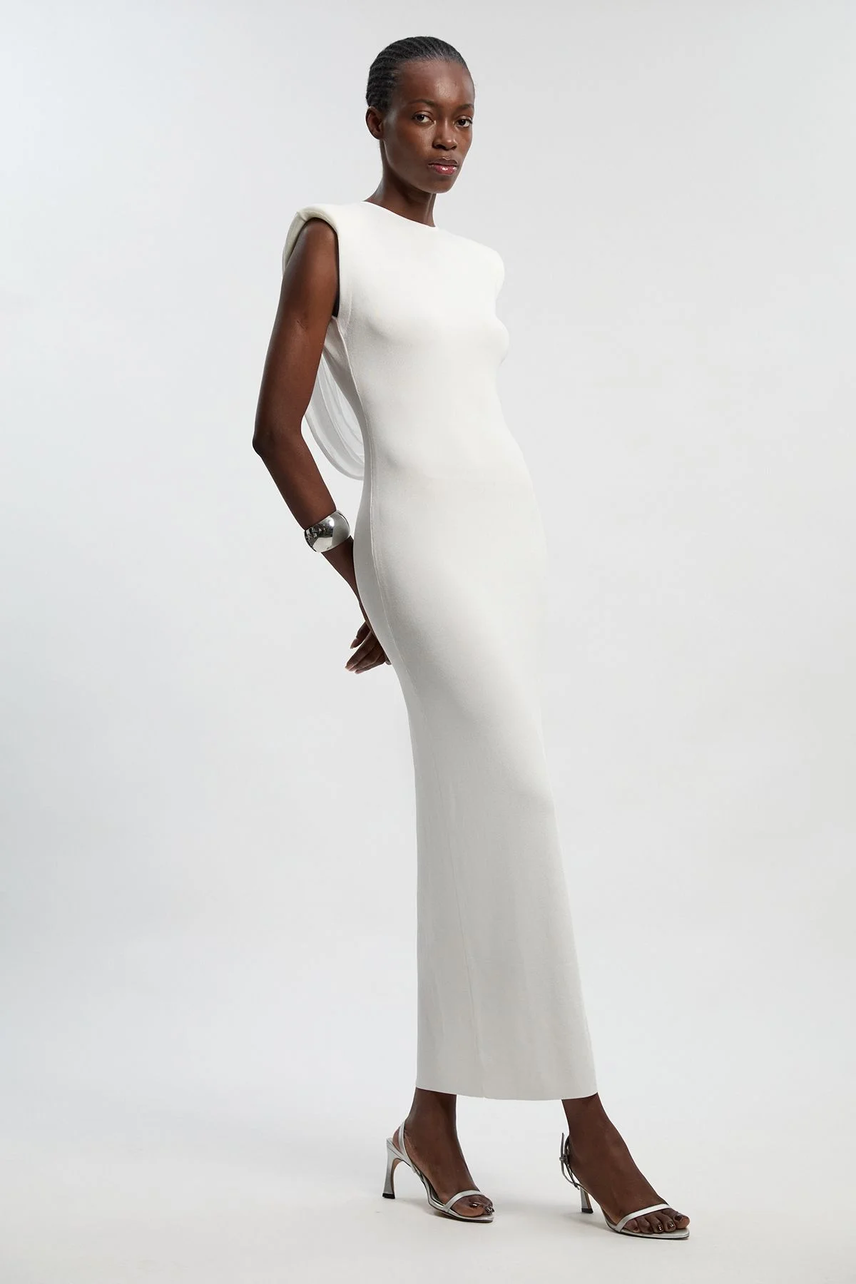 Viscose Blend Slinky Drape Plunge Back Knit Maxi Dress