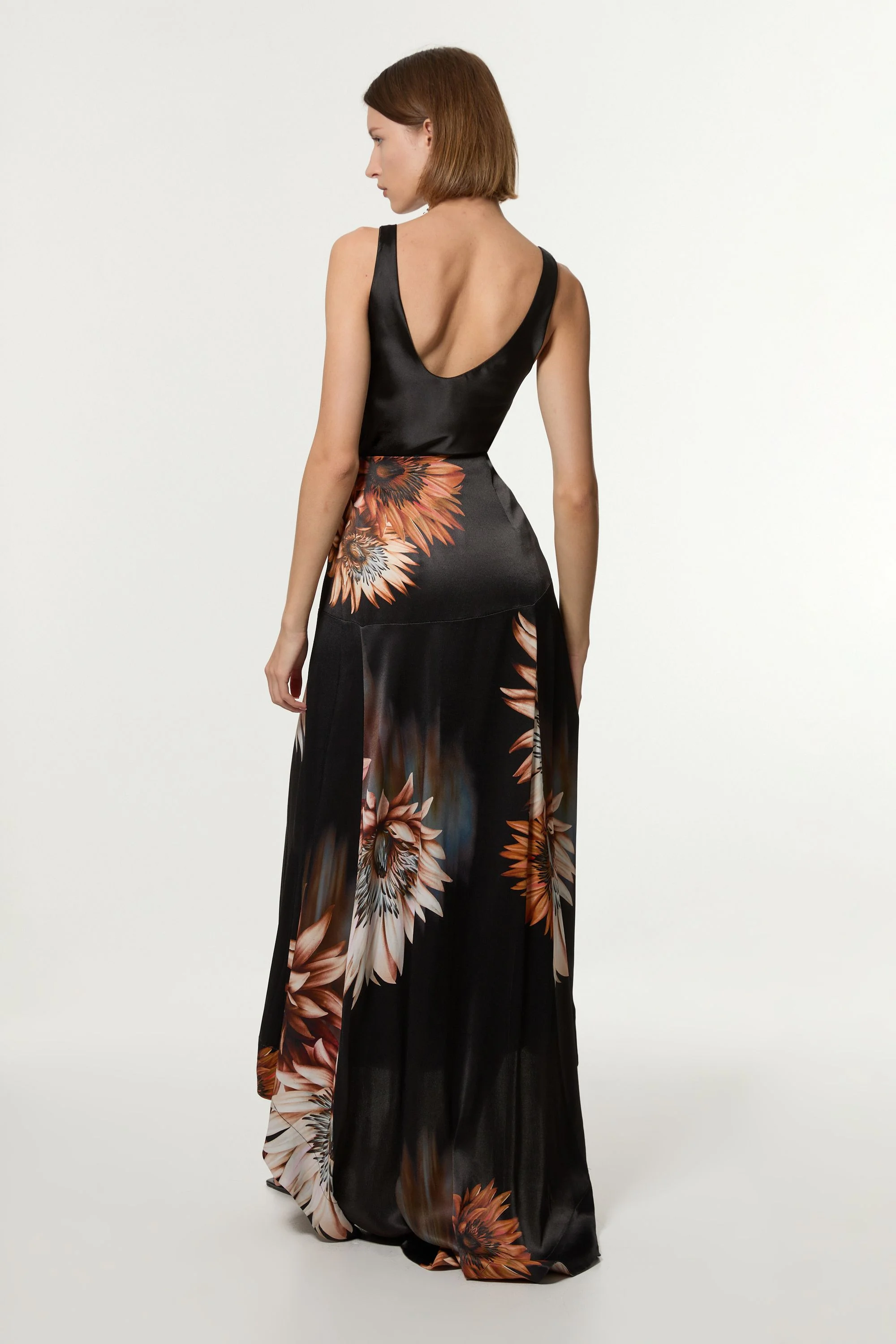 Viscose Satin Printed Panelled Train Maxi Skirt