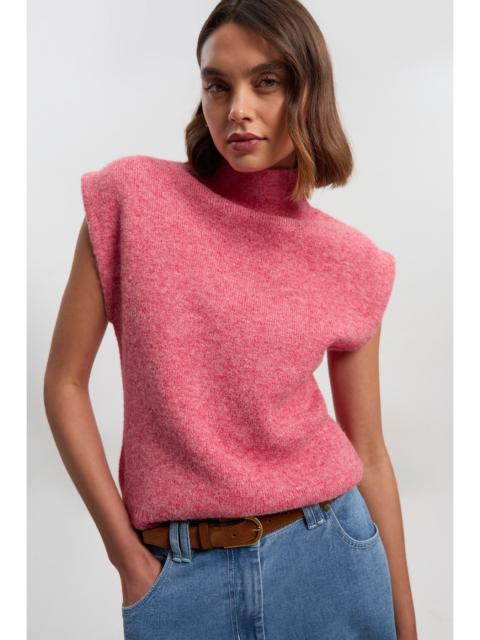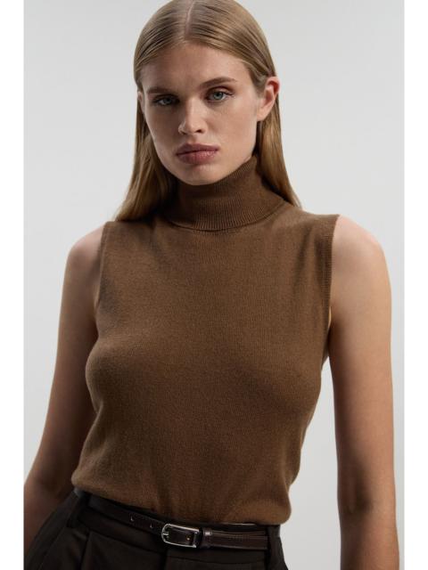 - Luxuriously soft wool blend for exceptional comfort and warmth - Sleeveless design perfect for versatile layering throughout the seasons - Sophisticated roll neck silhouette adds refined elegance to your ensemble - Clean, minimalist cut creates a streamlined profile that flatters the figure - Ribbed neckline provides structure and maintains its shape with wear This sleeveless roll neck knit top embodies refined simplicity with its clean lines and sophisticated silhouette. The sumptuous wool blend offers a gentle touch against the skin whilst providing just the right amount of warmth for transitional weather. Style as seen with leather trousers and a slim belt for a contemporary daytime look that balances texture and form beautifully. The versatile design works equally well under a tailored blazer for work meetings or paired with wide-leg trousers and statement jewellery for family gatherings. During cooler months, layer under an oversized cardigan or cropped jacket. This piece transitions effortlessly from day to evening - simply swap your trainers for ankle boots and add sculptural accessories like the bold cuff bracelet shown for additional interest. A wardrobe essential that combines timeless design with modern sensibility. Product Details & Care Main: 40% Polyester, 32% Wool, 28% Nylon. Was on a 30 wool cycle. Model wears UK size Small, Models height approx 5"9.
