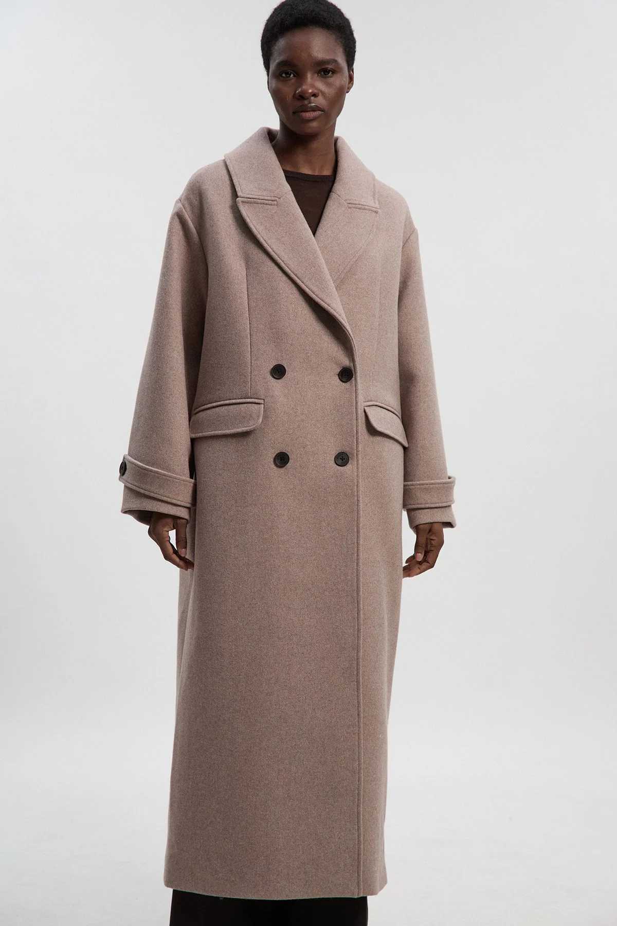 Wool Oversized Double Breasted Tailored Midi Coat Product Details & Care Main 52% Wool, 40% Polyester, 7% Polyamide. Model height 5"9. model wears UK8/ US4. Item length 135cm
