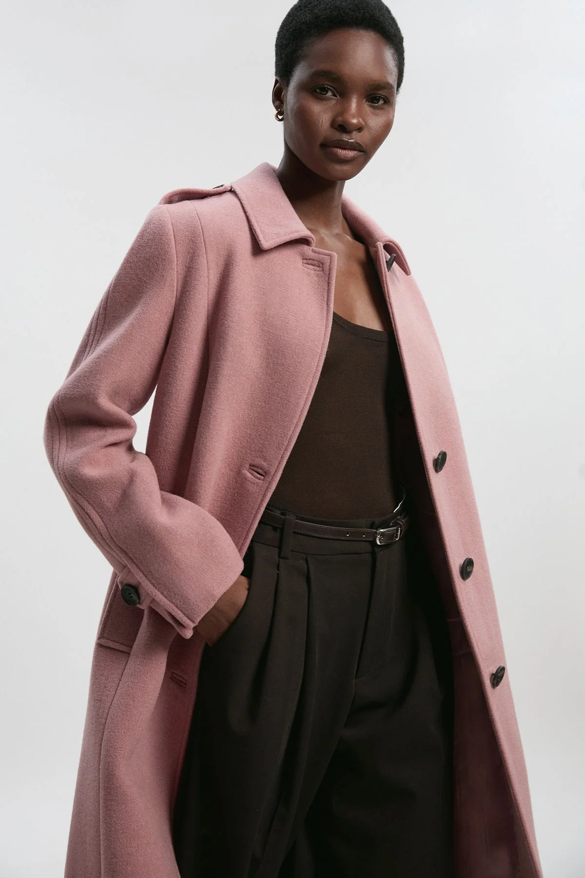 - Luxurious wool-blend fabric for exceptional warmth and comfort - Oversized silhouette with single-breasted button fastening for contemporary elegance - Tailored midi length offering sophisticated coverage and versatile styling options - Classic collar design that frames the face beautifully - Practical side pockets perfect for keeping hands warm or storing essentials The Karen Millen Wool Oversized Tailored Coat embodies refined daywear with its impeccable craftsmanship and timeless design. The generous proportions create a relaxed yet polished silhouette that works wonderfully layered over both casual and smart ensembles. Style as shown with wide-leg trousers and a simple top for an effortlessly chic look that transitions seamlessly from office to weekend brunch. The midi length offers practical coverage during cooler months while maintaining a sophisticated aesthetic. This coat makes a stunning companion for autumn strolls, family gatherings, or coffee dates in the city. Pair with ankle boots and a crossbody bag for everyday elegance, or dress down with your favourite trainers and jeans for a more casual approach. A true investment piece that will remain a wardrobe cornerstone for years to come. Product Details & Care Main: 64% Wool, 36% Polyester. Lining: 55% Polyester, 45% Viscose/Rayon. Model wears: UK8 / US4. Model height: 5"9. Approx length: 131cm