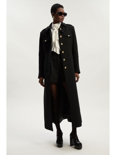 This Karen Millen wool blend coat combines timeless tailoring with contemporary design elements. The structured silhouette and classic double-breasted fastening create a refined daywear piece that transitions effortlessly from weekday to weekend. The practical patch pockets add both visual interest and functionality to this versatile piece. This coat works with both flat ankle boots for everyday errands or chunky loafers for a more polished daytime look. Tailored short coat Double-breasted design Wide notched lapels Structured shoulders Regular fit Product Details & Care Main: 48% Polyester, 48% Wool, 4% Other fibres. Lining: 55% Polyester, 45% Viscose/Rayon. Model wears: UK8 / US4. Model height : 5"9. Approx length: 73cm