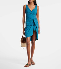 Elevate your beach-day look with this cover-up from Karla Colletto’s Basics line. This pull-on piece sits low on the waist for maximum comfort while maintaining style. Product Details - Material: 75% nylon, 25% elastane - Care instructions: hand wash cold - Made in the USA - Color: blue - Designer color name: Teal - Item color: blue - Closure: wrap-front - Item number: P01134875 Size & Fit - Length 150cm-59" - Max. width 62cm-24.5"