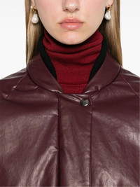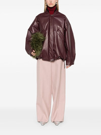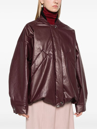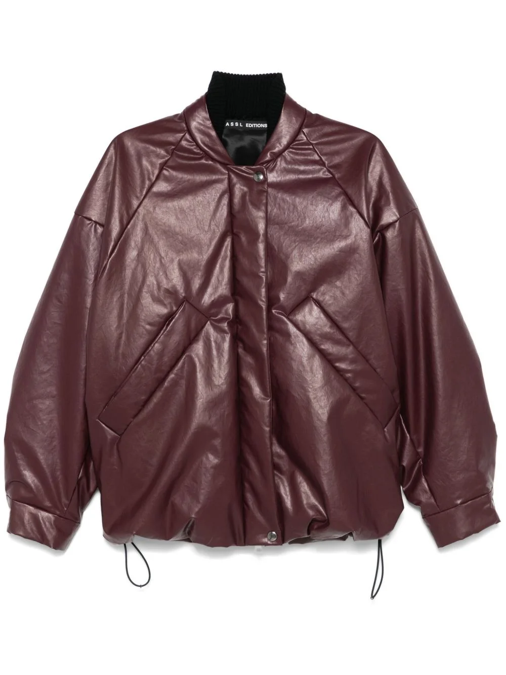 padded bomber jacket Highlights - Cherry red - Cotton blend - Coated finish - Padded design - Concealed front zip fastening - Band collar - Long sleeves - Press-stud fastening cuffs - Two side welt pockets - Full lining - Internal patch pocket - Elasticated waistband with internal drawstring Imported Composition Outer: Merino 100%, Cotton 68%, Polyurethane 29%, Elastane 3% Lining: Viscose 100%, Polyester 100% SIZE & FIT Model measurements Height 5 ft 9 in(1.75 m) Bust/Chest 31.88 in(81 cm) Hips 34.64 in(88 cm) Waist 24.01 in(61 cm) FittingInformation Designed to be unstructured, offering a loose fit throughout The internal drawstring at the hem allows for fitted preferences Made from a padded non-stretch fabric, giving it no natural elasticity