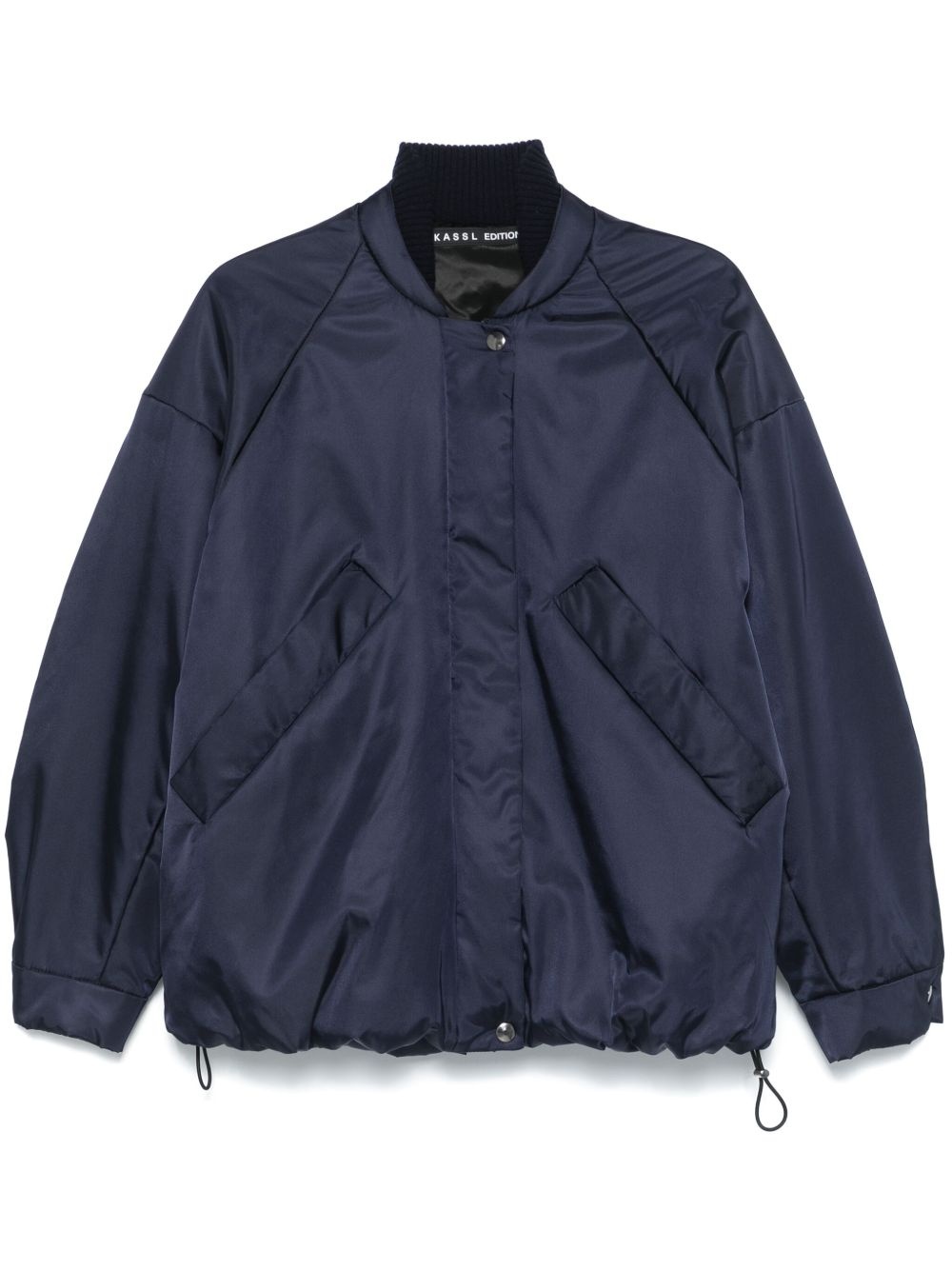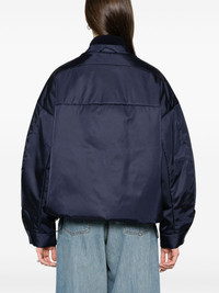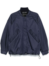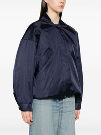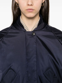 padded bomber jacket Highlights - Navy blue - Front press-stud and zip fastening - Two press-stud fastening side pockets - Press-stud fastening cuffs - Drawstring hem Imported Composition Outer: Polyamide 96%, Polyurethane 4% Lining: Polyester 100%, Viscose 100%, Merino 100% SIZE & FIT Model measurements Height 5 ft 10 in(1.78 m) Bust/Chest 33.85 in(86 cm) Hips 36.61 in(93 cm) Waist 25.19 in(64 cm) FittingInformation Designed for an oversized fit, offering additional room throughout The adjustable drawstring means that you can adjust this piece’s fit to suit your comfort and preference Made from a padded non-stretch fabric, giving it no natural elasticity