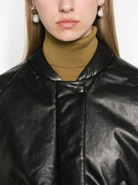 polished bomber jacket Highlights - Black - Polished effect - Concealed front zip fastening - Baseball collar - Drop shoulder - Long sleeves - Press-stud fastening cuffs - Two side welt pockets - Drawstring hem Imported Composition Outer: Merino 100%, Cotton 68%, Polyurethane 29%, Elastane 3% Lining: Viscose 100%, Polyester 100% SIZE & FIT Model measurements Height 5 ft 9 in(1.75 m) Bust/Chest 31.88 in(81 cm) Hips 34.64 in(88 cm) Waist 24.01 in(61 cm) FittingInformation Designed for an oversized fit, offering additional room throughout The internal drawstring at the hem allows for fitted preferences Made from a padded non-stretch fabric, giving it no natural elasticity