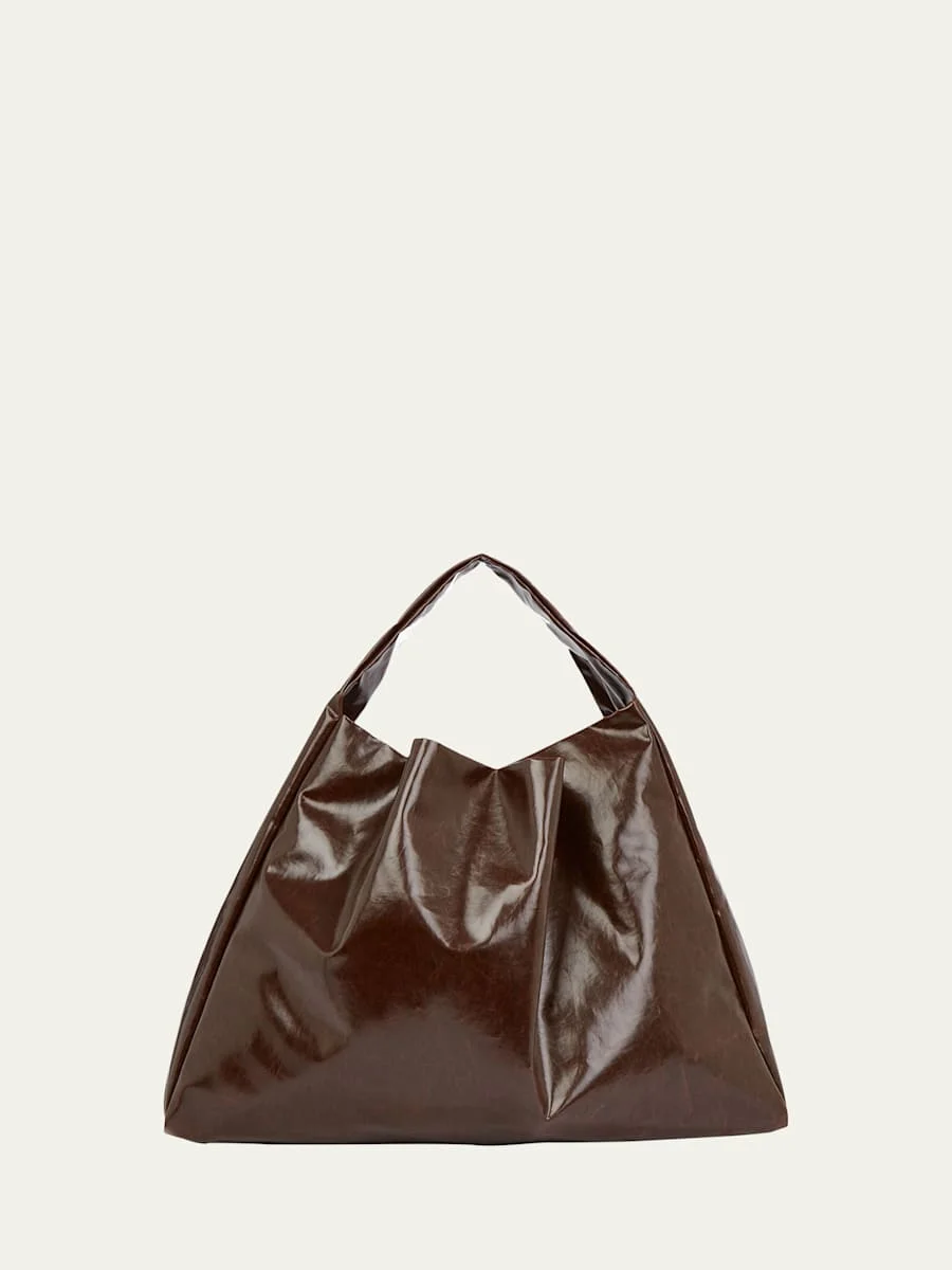 Kassl "Skai" tote bag in shiny canvas cotton, faux leather (polyurethane), an elastane Top handle Can be worn as a top handle or shoulder bag Open top Lining: Cotton/polyurethane Approx. 21.7"H x 15.2"W x 5.1"D Item Weight (Lbs.): 0.8 Made in Poland Online Inquiries: BGS21_V68QG| Store Inquiries: #4811865