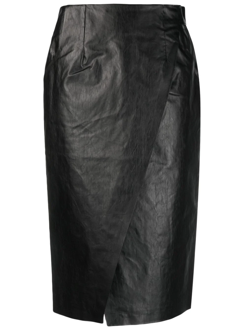 strap-detail wrap midi skirt Highlights - Black - Cotton blend - Stretch-design - Faux leather - Crinkled finish - Wrap design - Strap detailing - High-waisted - Concealed press-stud fastening - Two side slit pockets - Knee-length - Straight hem Imported Composition Cotton 68%, Polyurethane 29%, Elastane 3% SIZE & FIT Model measurements Height 5 ft 10 in(1.77 m) Bust/Chest 31.1 in(79 cm) Hips 34.64 in(88 cm) Waist 24.8 in(63 cm) FittingInformation This midi-length skirt is intended to be worn high on the waist The vented hem offers movement at the rear Made from a midweight fabric This piece fits true to size – take your usual size