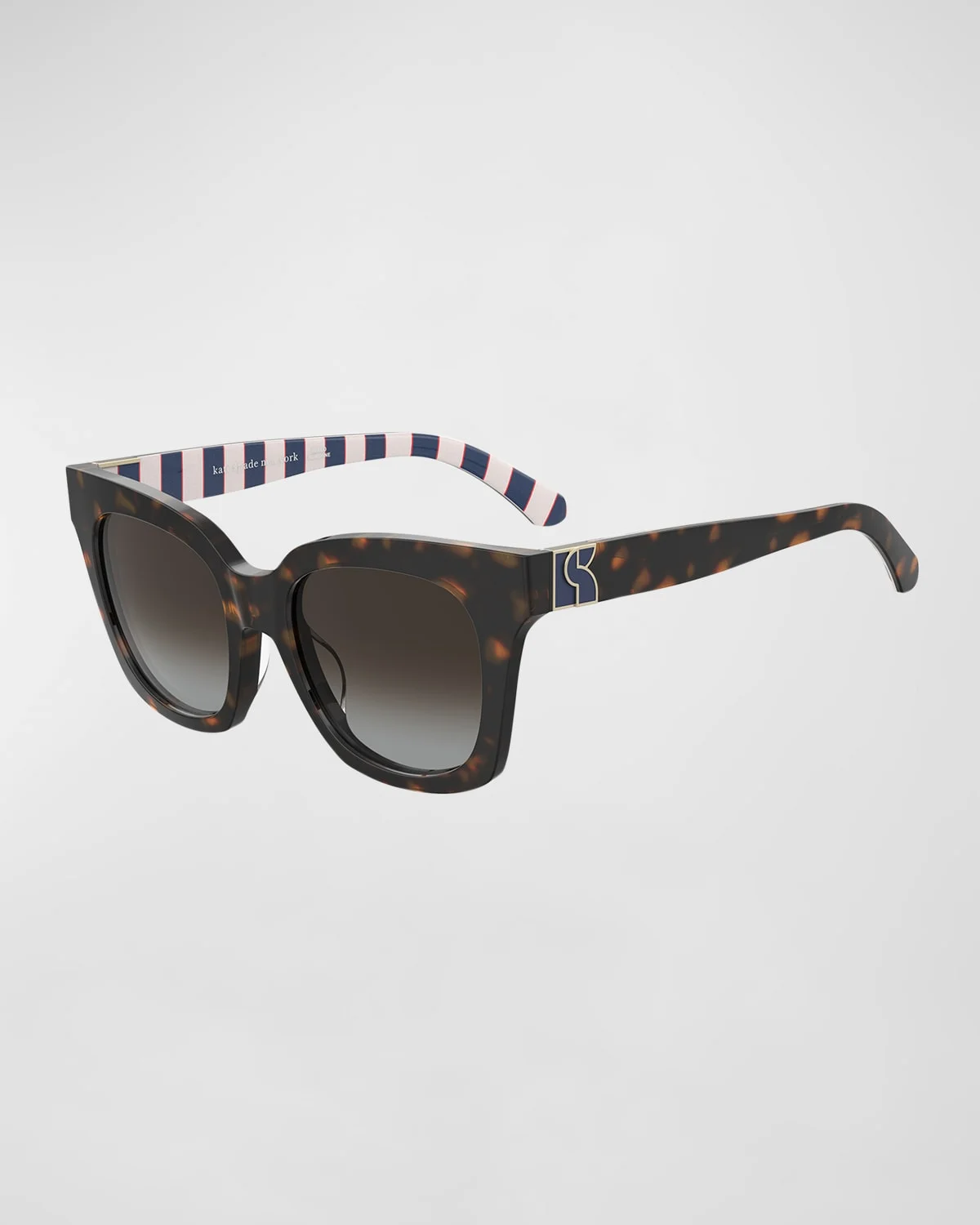 kate spade new york "constance" cat-eye sunglasses in acetate & nbsp; Lens/bridge/temple (in mm): 53-19-145 Gradient lenses Saddle nose bridge & nbsp; Logo on temples & nbsp; Wide, tapered arms & nbsp; Wipe clean 100% UVA/UVB protection Imported Proposition 65 warning for California residents
