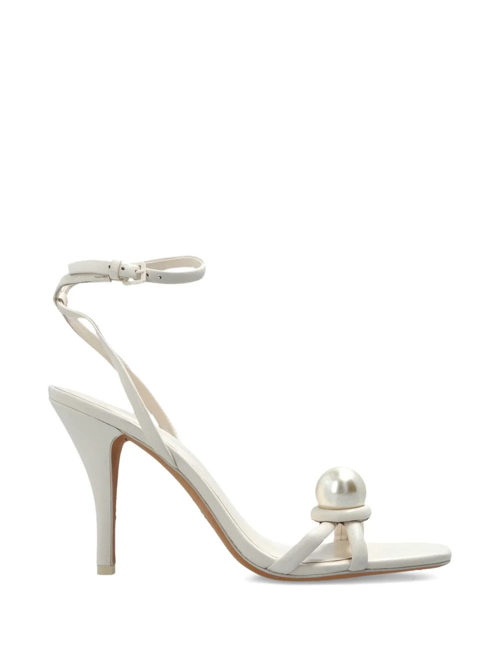 HRMY HGH sandals Highlights - Cream - Buckled ankle strap - Pearl embellishment - Square open toe - Stiletto heel Imported Composition Lamb Skin 100%