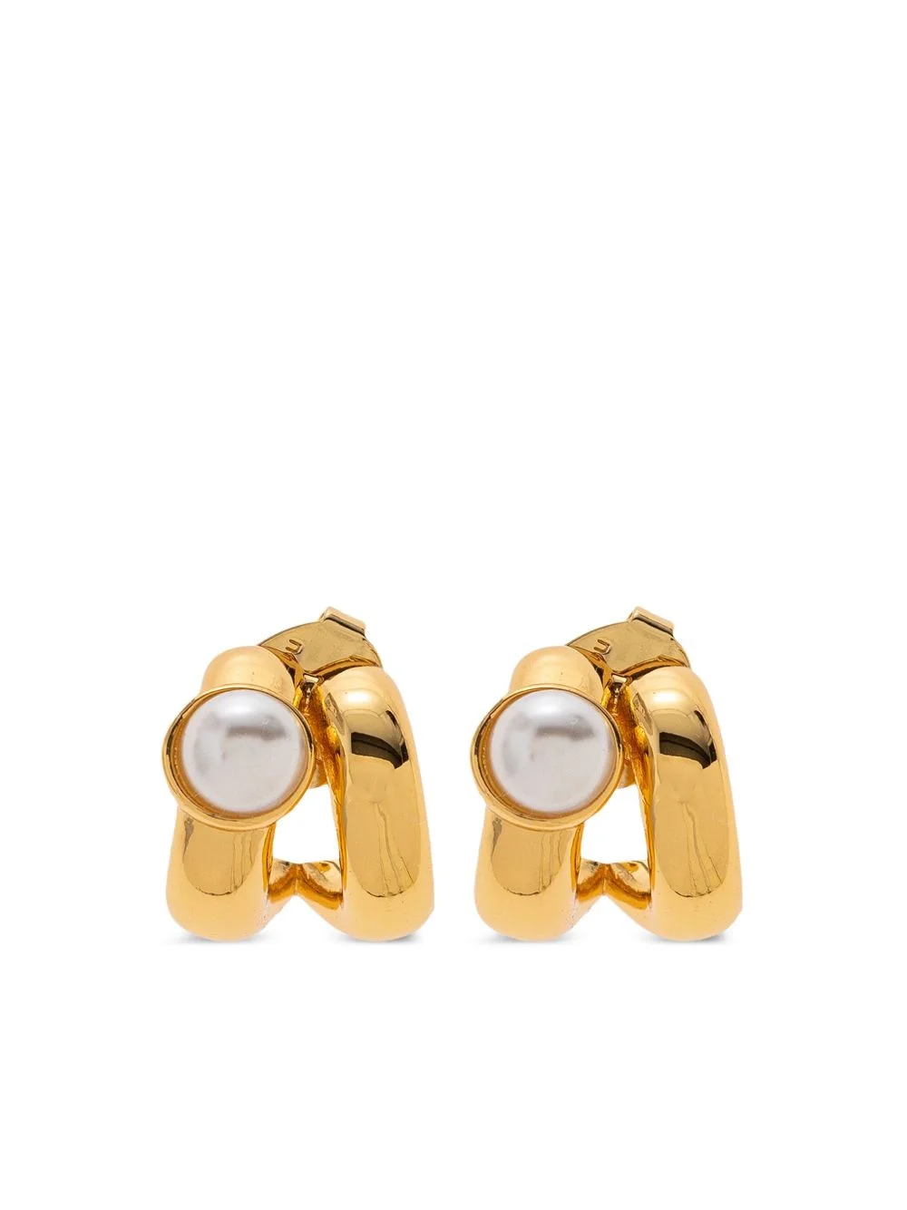Keep Sparkling earrings Highlights - Gold tone - Huggie hoop design - Smooth surface - Pearl embellishment - Secure clip fastening - Contemporary style - For pierced ears - These earrings come as a pair. Imported