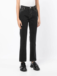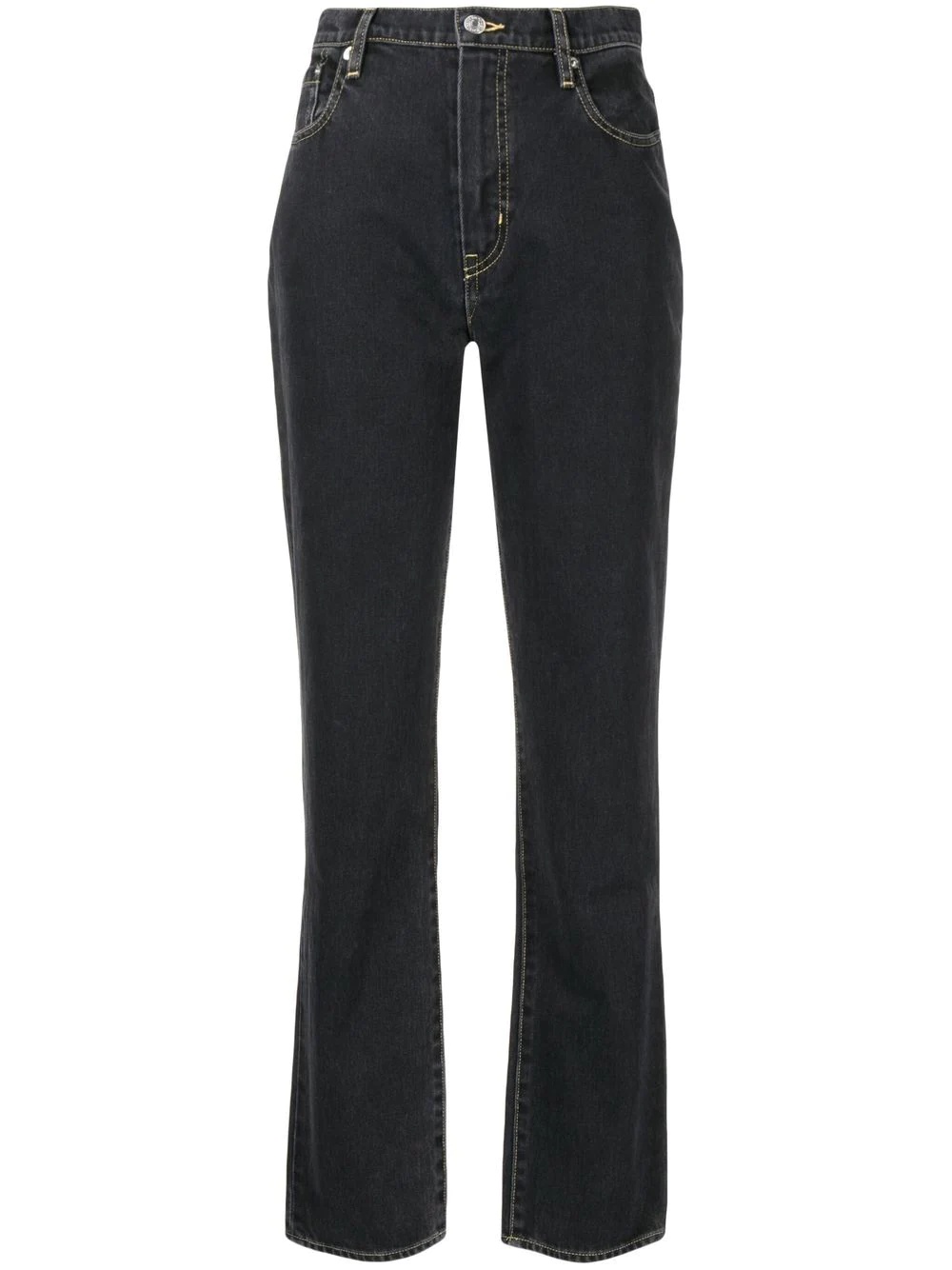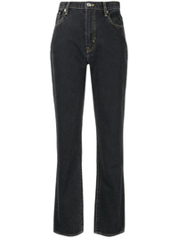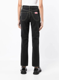 logo-patch slim-cut jeans from KENZO featuring black, cotton, logo patch to the rear, mid-rise, button fly fastening, classic five pockets and slim cut. Highlights - Black - Cotton - Logo patch to the rear - Mid-rise - Button fly fastening - Classic five pockets - Slim cut Imported Composition Cotton 100%
