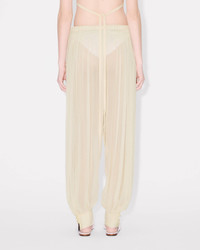 Balloon pants in transparent silk veil. Low-waist. Pleats at front, back and bottom. Silk tie to adjust the waist with a silk finishings inside. 3 small buttons at the bottom leg. KENZO Archive tonal signature at bottom leg. Product Reference: FF62PA1159AB.03 SIZE & FIT The model is 175 cm tall and is wearing size S. Oversize fit. COMPOSITION & CARE Made in Tunisia 100% silk Do not bleach Iron at low temperature Do not tumble dry Do not wet-clean