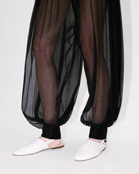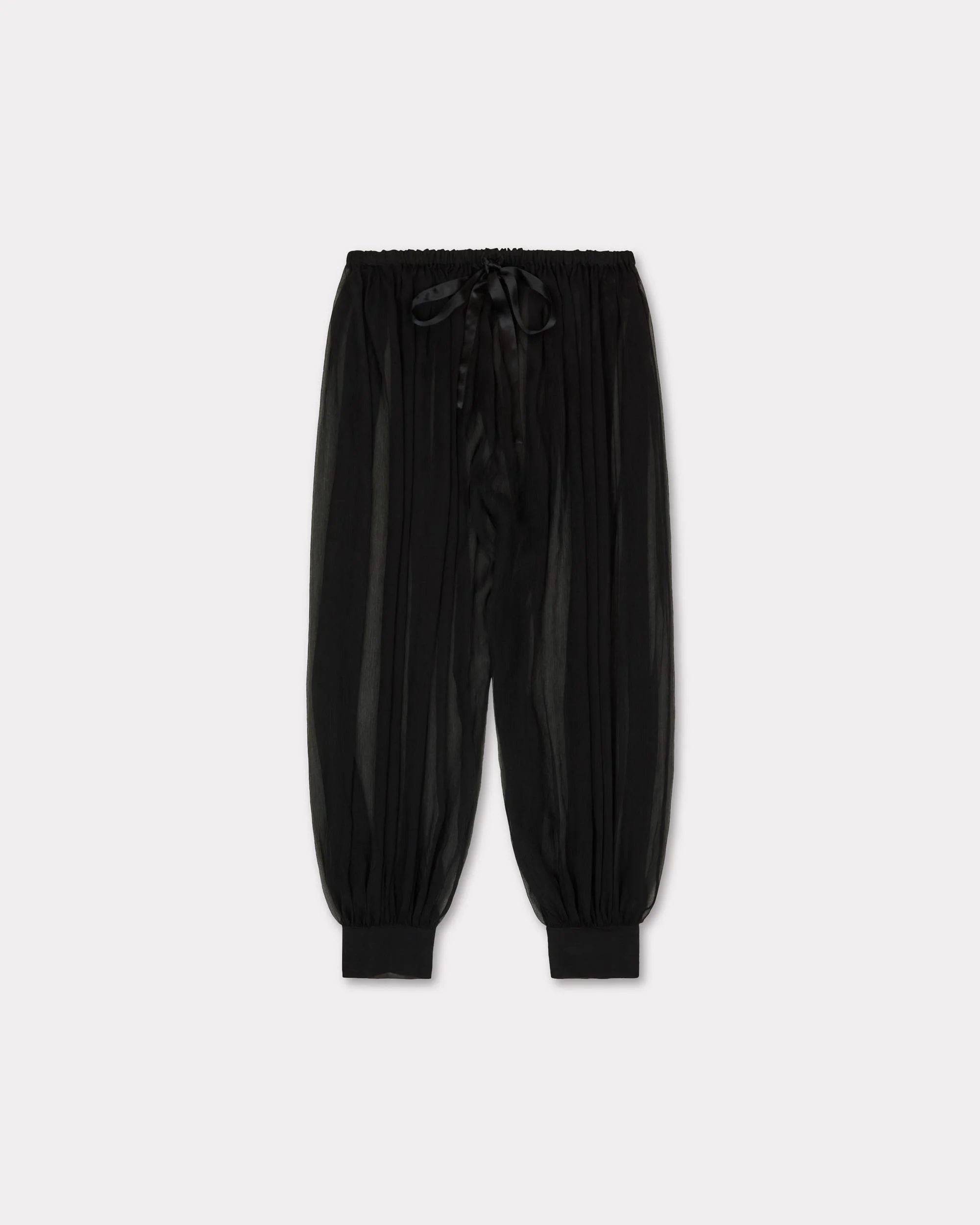 Balloon pants in transparent silk veil. Low-waist. Pleats at front, back and bottom. Silk tie to adjust the waist with a silk finishings inside. 3 small buttons at the bottom leg. KENZO Archive tonal signature at bottom leg. Product Reference: FF62PA1159AB.99 SIZE & FIT The model is 175 cm tall and is wearing size S. Oversize fit. COMPOSITION & CARE Made in Tunisia 100% silk Do not bleach Iron at low temperature Do not tumble dry Do not wet-clean