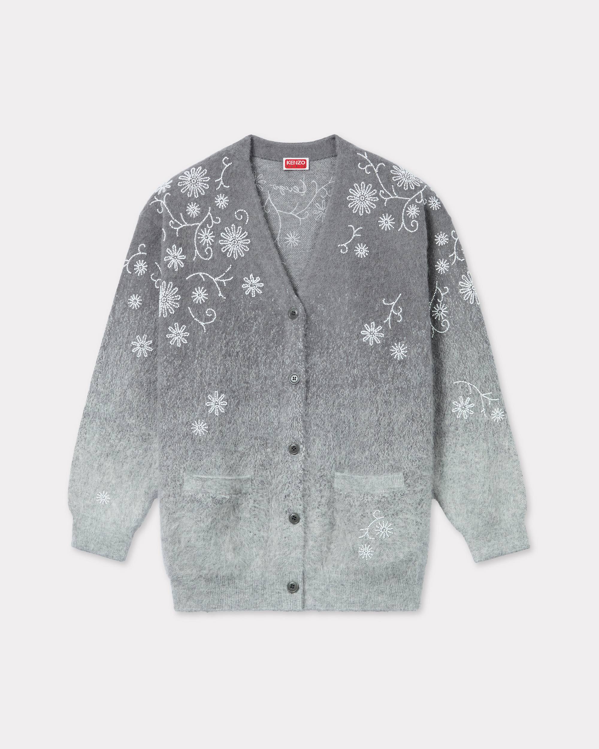 KENZO Marguerite' embellished cardigan. All-over degrade. Traditional Japanese karakusa pattern. Hairy Wool and Alpaca mix. KENZO Paris archive signature embroidered in pearls at upper back. Tone on tone branded buttons. Two front pockets. Product Reference: FE62CA4713CU.97 SIZE & FIT The model is 175 cm tall and is wearing a size S. COMPOSITION & CARE Made in China 47% nylon, 34% alpaca, 19% wool Do not bleach Do not dry-clean Iron at low temperature Flat drying in the shade Do not tumble dry Hand wash Very mild professional wet-cleaning