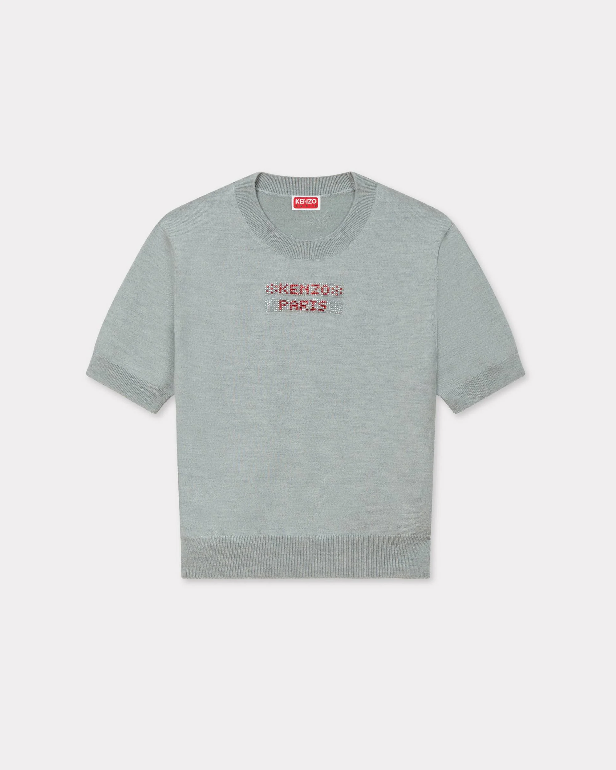 Beaded trims top. Light Wool. ‘KENZO Paris’ branding in pearls as a front placed artwork. Pearls embroideries representing the Eiffel Tower and the Mount Fuji. Product Reference: FF62TO6063CU.94 SIZE & FIT The model is 175 cm tall and is wearing size S. COMPOSITION & CARE Made in China 88% wool, 11% polyamide, 1% elastane Do not bleach Mild professional dry-cleaning in: hydrocarbons Flat drying in the shade Do not tumble dry Very mild professional wet-cleaning
