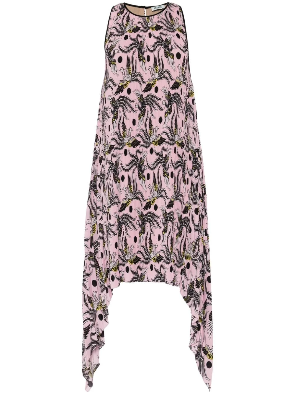 bird-print plisse midi dress Highlights - Pink/multicolour - Plisse effect - Animal print - Contrasting trim - Round neck - Rear button fastening - Keyhole detail to the rear - Sleeveless - Full lining - Ankle-length - Asymmetric hem Imported Composition Outer: Polyester 100% Lining: Polyester 100%