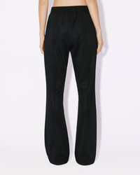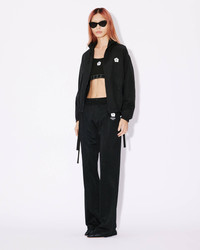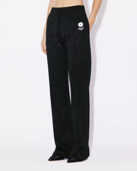 These jogging trousers offer a minimalist angle on the Boke flower, renamed 'Boke Flower 2.0', in an embroidered motif embellished by the KENZO Paris logo. The tailored fit and slightly flared cut is a highly flattering on-trend style. They can be paired with the matching jacket for the complete look or mixed for a more urban vibe. Tailored and flared jogging trousers. 'Boke Flower 2.0' logo embroidered on the leg. Elasticated drawstring waist. Product Reference: FE52PA7224IE.99J SIZE & FIT Tailored and slightly flared cut.The model is 175 cm and wears a size S. COMPOSITION & CARE Made in Portugal 55% polyester, 43% viscose, 2% elastane Do not bleach Do not dry-clean Iron at low temperature Flat drying in the shade Do not tumble dry 30°C mild fine wash Mild professional wet-cleaning