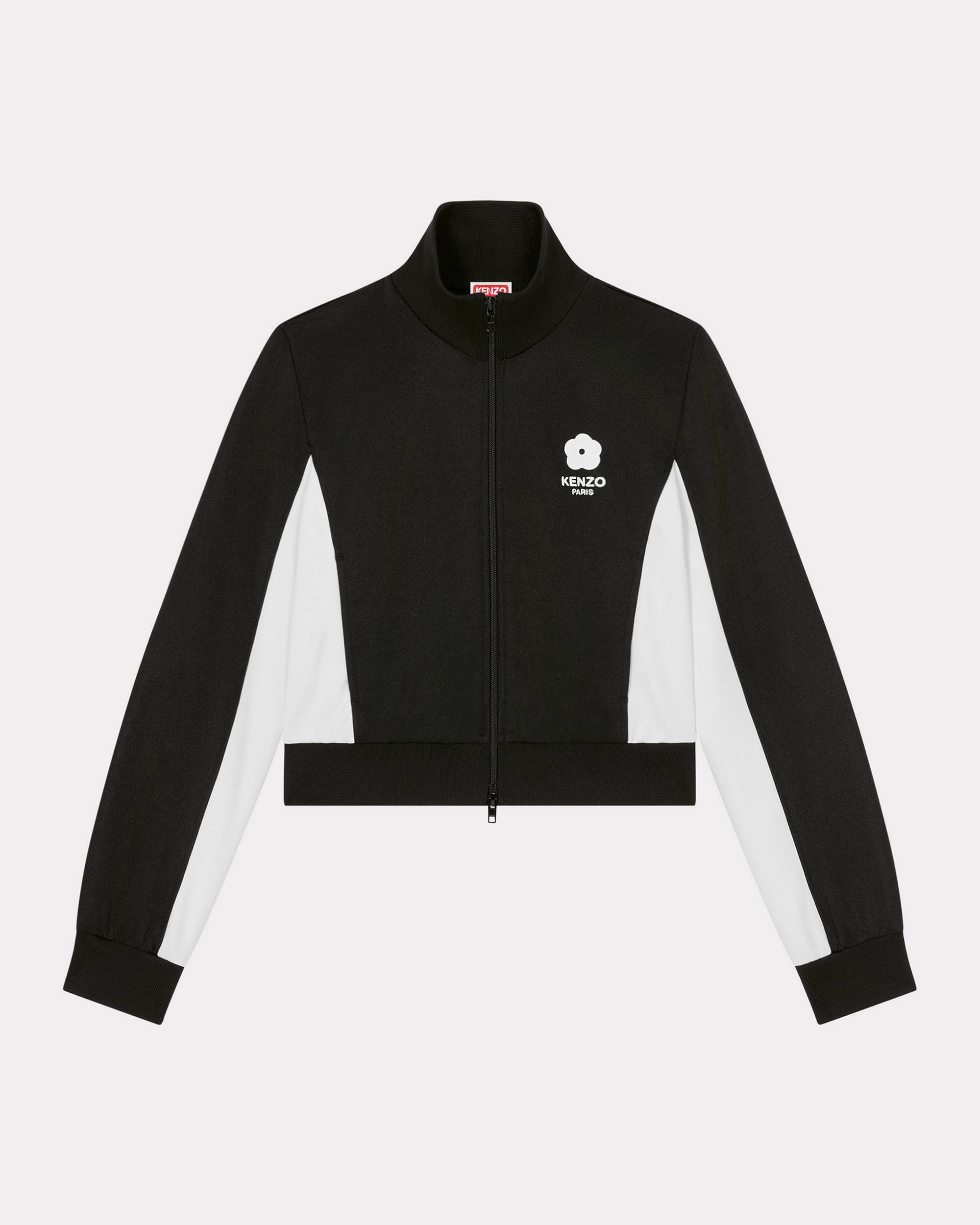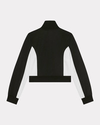 This two-tone tracksuit top offers a minimalist interpretation of the emblematic Boke Flower, created by Nigo. Its fitted design creates a particularly feminine look. Wear it with matching trousers or to complete an outfit as a lightweight jacket. 'Boke Flower 2.0' embroidered tracksuit top. Long sleeves. High neckline. 'Boke Flower 2.0' and 'KENZO Paris' designs embroidered on the chest. Contrasting panels on sleeves and sides. Ribbed neckline, cuffs and hem. Double zip fastening. Product Reference: FE52SW1194IE.99J SIZE & FIT Fitted cut.The model is 175 cm tall and wears a size S. COMPOSITION & CARE Made in Portugal 55% polyester, 43% viscose, 2% elastane Do not bleach Do not dry-clean Iron at low temperature Flat drying in the shade Do not tumble dry 30°C mild fine wash Mild professional wet-cleaning