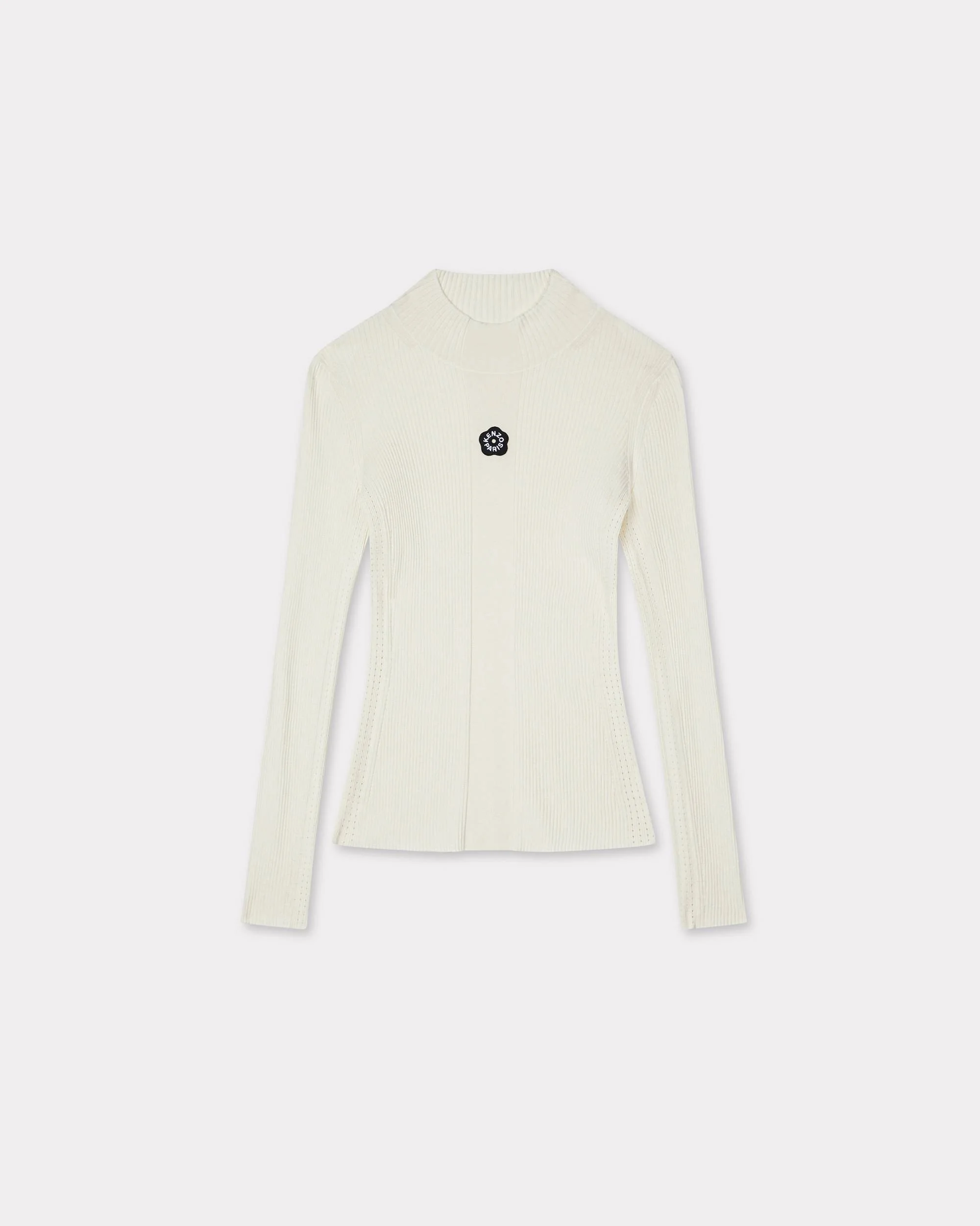 'Boke Flower 2.0' embroidered long sleeve rib top. Mock neck top. Viscose and Polyester Mix. 'Boke Flower 2.0’ embroidery at center chest on a flat jersey tape. Sweat release hole on both sides. Product Reference: FF62TO6123LG.01 SIZE & FIT The model is 175 cm tall and is wearing size S. COMPOSITION & CARE Made in China 86% viscose, 14% polyester Do not bleach Mild professional dry-cleaning in: hydrocarbons 30°C very mild fine wash Very mild professional wet-cleaning